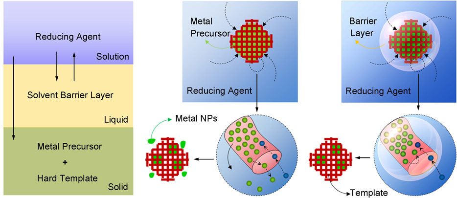We benefited from the expertise of our Lab members in the synthesis of noble metal nanocrystals in solution. Instead of a heating reduction process, I and Prof. You HJ developed a general soft-enveloping strategy7 to synthesize a variety of components and structures as reported in Nature Communications. The main contribution of this work is that we solved the long-term technique issue in preparing noble metal nanocrystals within a confined mesoporous channels using the soft-enveloping protocol.