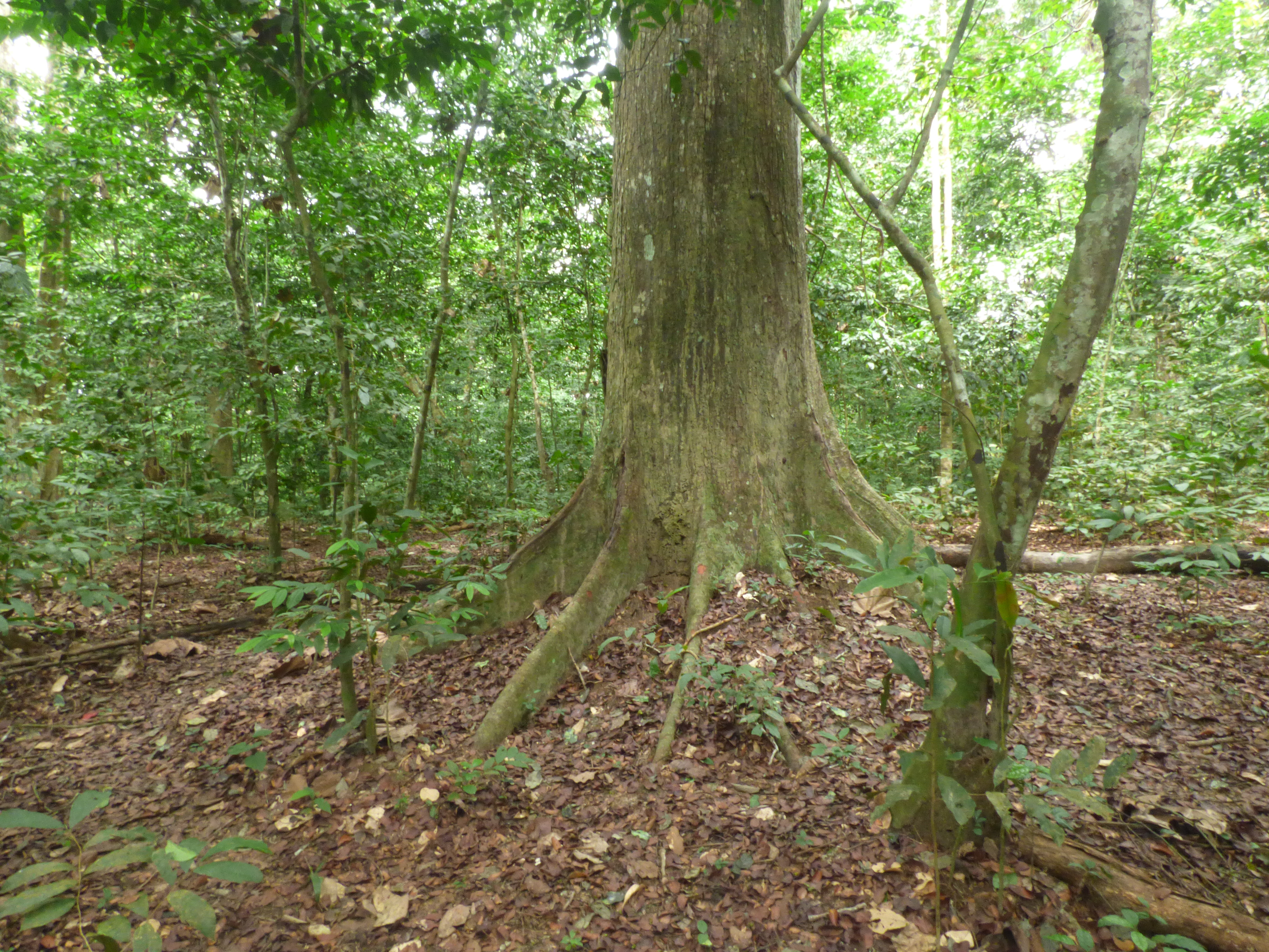 We walked along transects in the forest, recording and georeferencing all wildlife seen, heard, or the signs they leave behind – such as animal dung and ape nests.