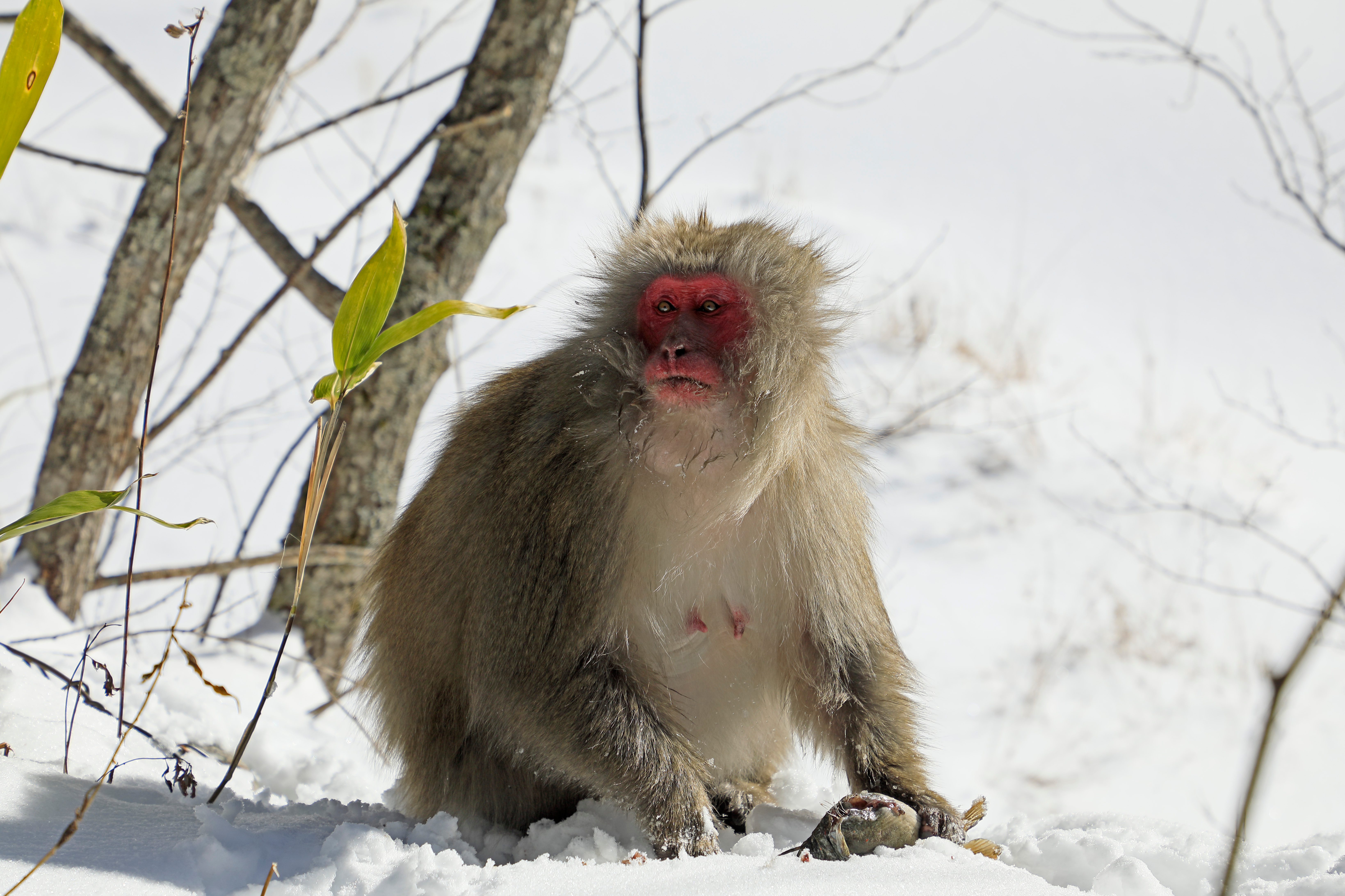 Fig 1. A snow monkey eating a swimming fish (photo by Masami GOTO).