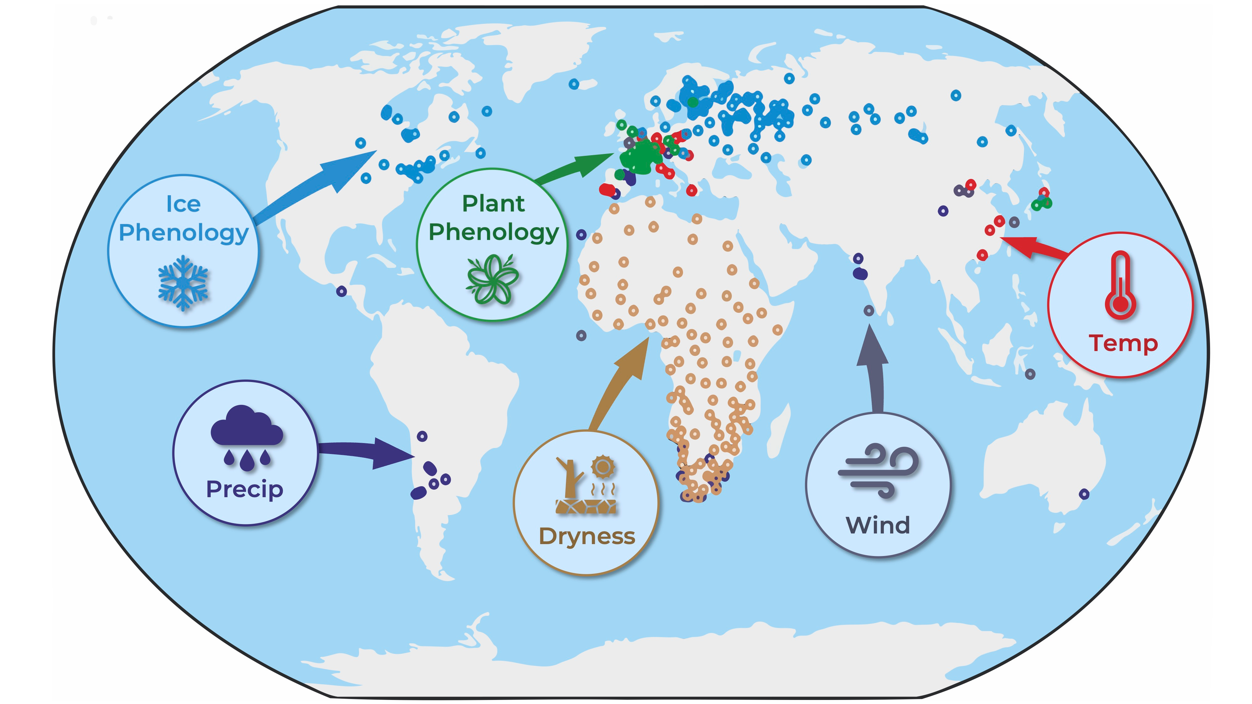 But not only are the document-based records very accurate climate proxies, but they also have the unique ability to fill gaps in regions and seasons that are not well represented by instrumental data and other paleoclimate proxies. Most climate field reconstructions based on natural proxies are subject to a bias toward the warm season since tree rings represent the growing season. Consequently, the cold season is rather poorly represented. Here, document-based series, particularly records of plant- and ice phenology come into play. By studying the phenological phases of plants, including leaf coloring in fall, and blossom in spring, as well as ice phenology parameters like freezing and thawing dates in early and late winter, we can gain unprecedented insights into the cold season temperature.