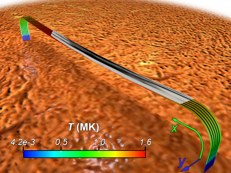 Yuhao Zhou, first author of our paper, was the fifth among my PhD students to choose filaments as their thesis topic. Last year, an idea jumped to our mind that turbulent heating at the solar surface, which had been proposed to solve the chromospheric and coronal heating problems, might be in charge of both the fine structures and the dynamics of solar filaments. Once there is an idea, you might think that the rest can be left to computers. Actually, it is not that straightforward. This phenomenon is a 3-dimensional (3D) landscape in reality; if you plan to perform 3D simulations, however, limited computational power would not allow you to achieve high-enough spatial resolution, which unfortunately is critical for studying the fine structures of filaments. We decided to take a 2D curved manifold that we call magnetic flux sheet, which stands in the 3D coronal space, as shown by the arcade in Fig. 2. Yuhao is good at magnetohydrodynamic (MHD) numerical simulations, and he quickly turned our ideas into computer languages.