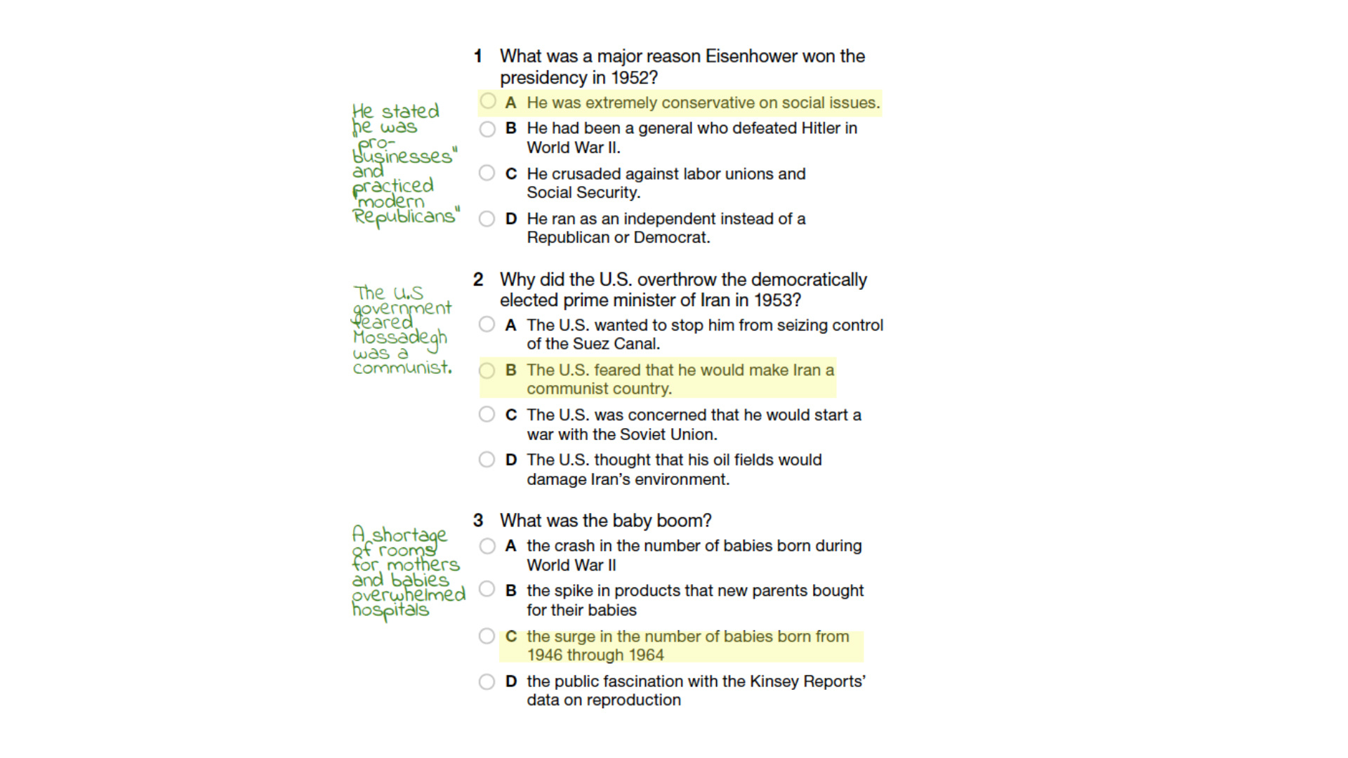 - The teacher re-formats the exam to include the multiple-choice item AND space for the student to write out their thinking (e.g. a box in Google docs / Microsoft Word for each item, etc.) OR the teacher gives students instructions about how to add the think-aloud to the existing copy of the exam (e.g. teaching students how to add text to a pdf using Kami, etc. See the example below).
