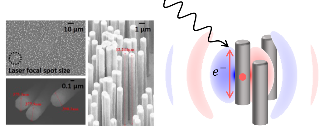 I was first introduced to nanowire targets 4 years ago - arrays of vertically aligned wires with ~100 nm diameter and micron-length - along with all the theory behind how these carefully manufactured laser targets have enhanced optical absorption. Their ability to absorb a lot of incident light makes them of great interest as laser targets to couple in more energy, but make it impossible to get any depth perception seeing them in person since they just appear as matte black - which is the reason I don't include a picture of the targets other than a scanning electron microscope image.