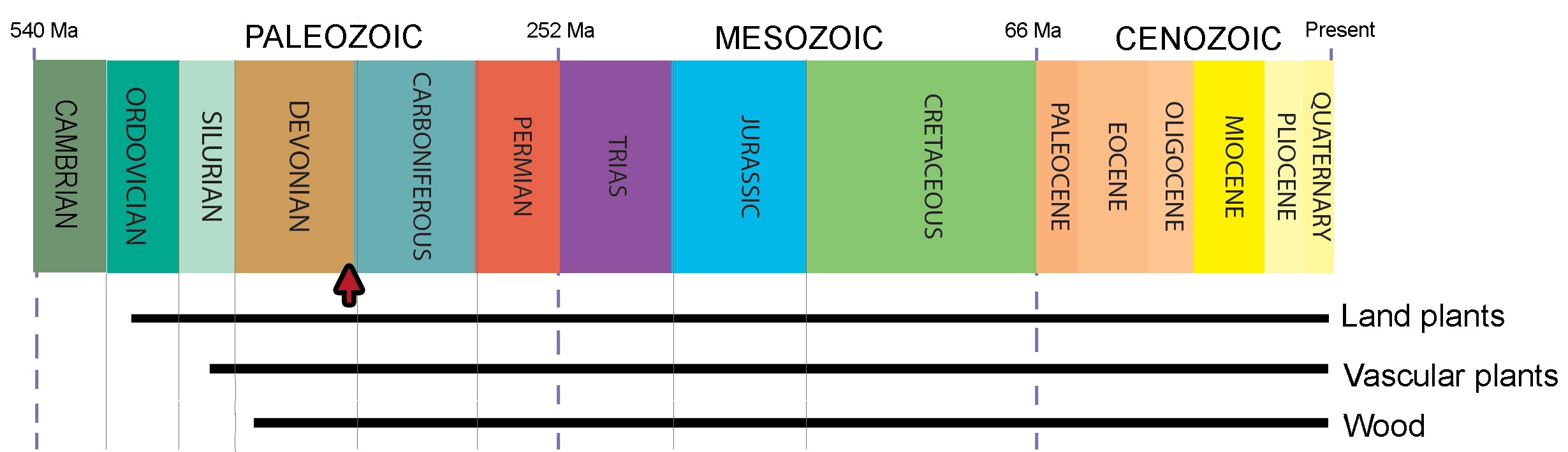 The oldest known fossils of vascular plants date back to the Silurian, more than 400 million years ago (see Fig. 1). During the Early Devonian, some of these plants grew larger and added to the primary water-conducting system a secondary xylem (also known as wood), produced by a lateral meristem. But how many times did wood evolve? What were the water-conducting properties of different fossil woods? What interactions existed between the earliest woody plants and wood-degrading microorganisms? To answer these questions, we study anatomically preserved fossils: plant remains that have been infiltrated by water rich in minerals preserving their tissues in three dimensions. These fossils allow us to study very fine details of extinct plant anatomy, in many cases down to the cellular level. With this information at hand, we can better understand the evolution of plant vascular systems, not only from a structural but also from a functional perspective.
