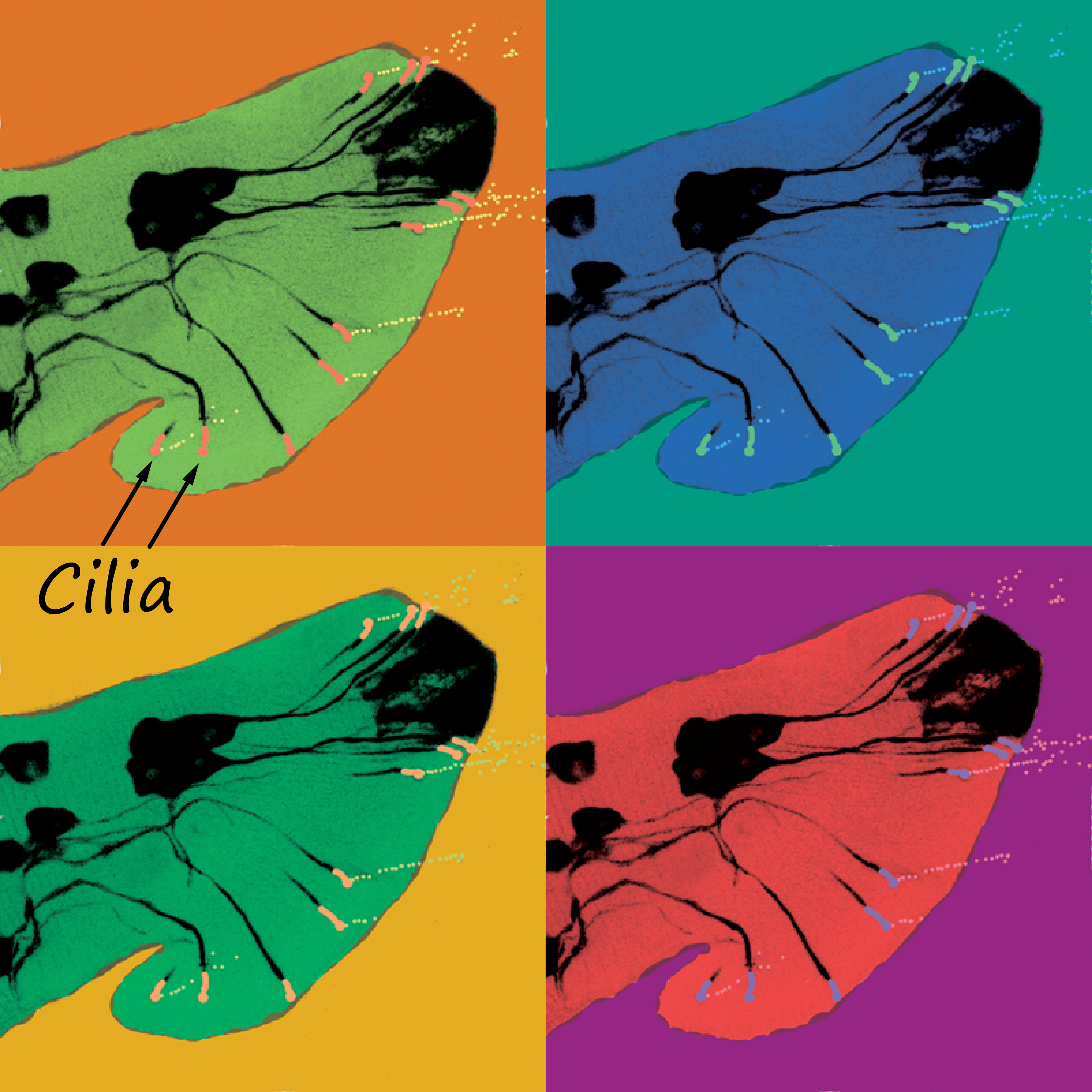 Among the top hits were transmembrane C-type lectins, a channel-like protein, and a family of TRAF adaptors best known for relaying immune and growth factor signals in human cells. TRAFs had never before been seen in cilia, and we observed them not only inside the ciliary shaft, but also at the tip and inside EVs – accompanying the polycystin complex.