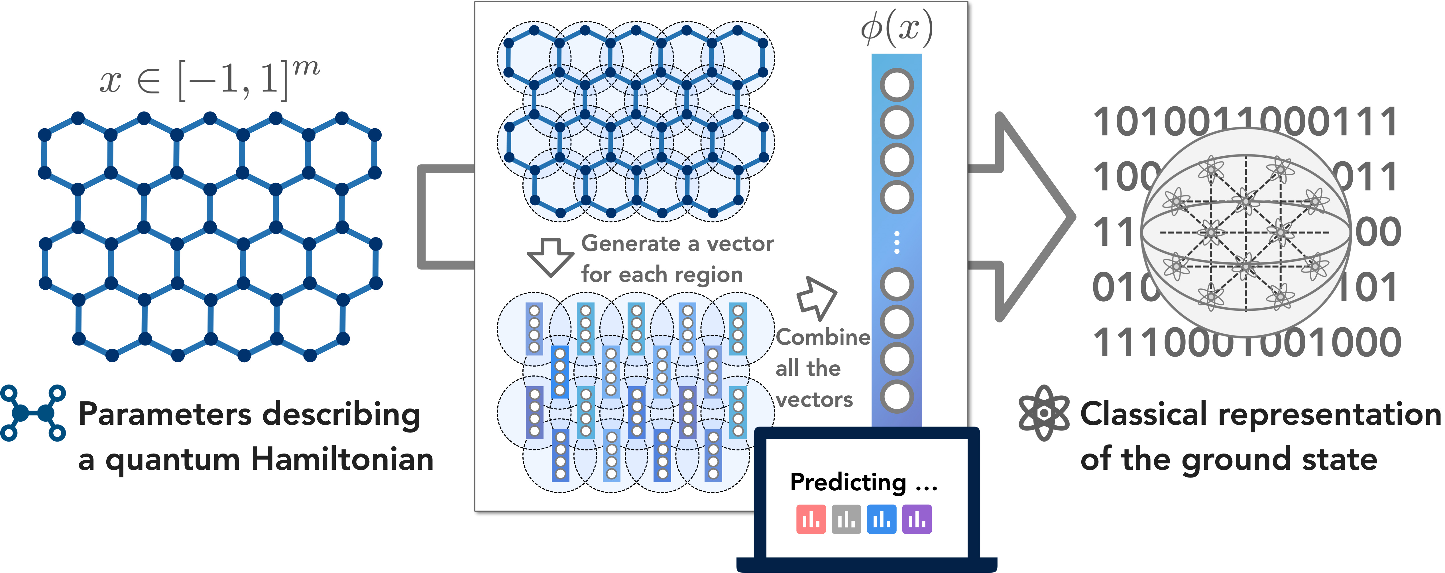 Our work, “Improved machine learning algorithm for predicting ground state properties,” published recently in Nature Communications, fixes this issue by rigorously proving that the amount of training data can be exponentially reduced (with respect to system size). We obtain this drastic improvement by incorporating knowledge of the geometry of the underlying quantum system into the ML algorithm. This allows us to better characterize the ground state and approximate it by a linear function on a high-dimensional feature space. Combining these pieces, we show that the number of training data points need only scale logarithmically in the number of qubits.