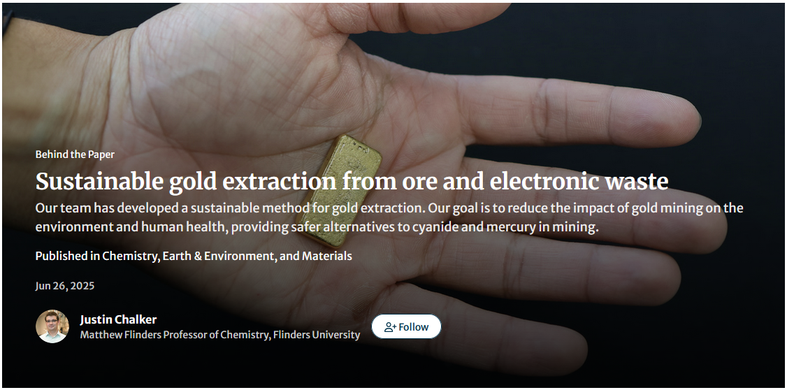 Can gold be extracted without harming people or the planet? @Justin Chalker presents a promising alternative to the toxic practices that dominate gold extraction today. By replacing mercury and cyanide with readily available, low cost reagents and recyclable sulfur- rich sorbents, the team demonstrated a safer and more sustainable approach to recovering gold from both ore and electronic waste. Designed with real world mining conditions in mind, the method balances chemical innovation with practicality and accessibility.