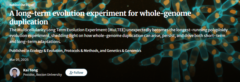 In this Behind the Paper blog post, @Kai Tong takes us behind the scenes of their Nature publication - from an undergraduate lecture spark, to years of experimental evolution, mentoring, setbacks, and a true eureka moment. The blog reveals how whole-genome duplication quietly emerged and persisted in snowflake yeast, reshaping how we think about polyploidy, multicellularity, and long-term adaptation, while celebrating the teamwork and mentorship that made the research possible.