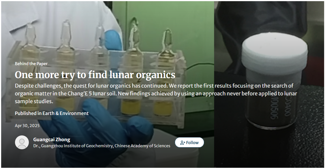 @Guangcai Zhong reports a fresh attempt to uncover organic matter in lunar samples returned by China’s Chang’E 5 mission. Using just 6 grams of precious lunar soil and an ultra-clean analytical setup built under pandemic constraints, the team applied an approach never-before-used in lunar sample studies. By combining rigorous contamination control with innovative molecular markers, they pushed the limits of what can be reliably detected in extraterrestrial materials.