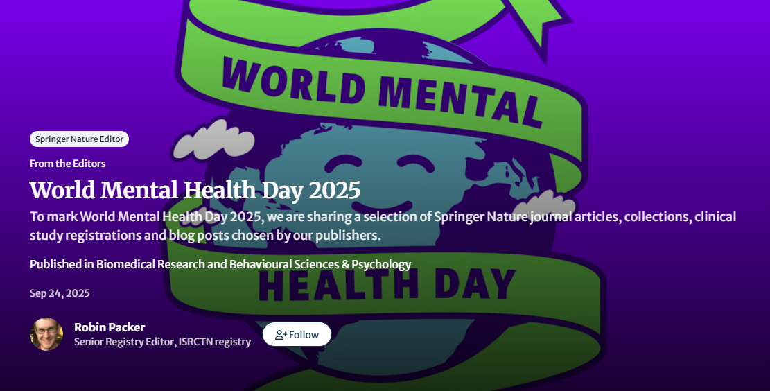 This October, we celebrated World Mental Health Day in the quarterly highlights. This From the Editors post from @Robin Packer marked the occasion by highlighting a curated selection of Springer Nature research and community content focused on mental health. It brings together recent journal articles, books, clinical study registrations, and blog posts that explore topics ranging from child and adolescent wellbeing to social determinants of mental health, sex differences in neuroscience, and so on. Explore the full post to discover the research featured across disciplines and learn how different communities are addressing mental health challenges worldwide.