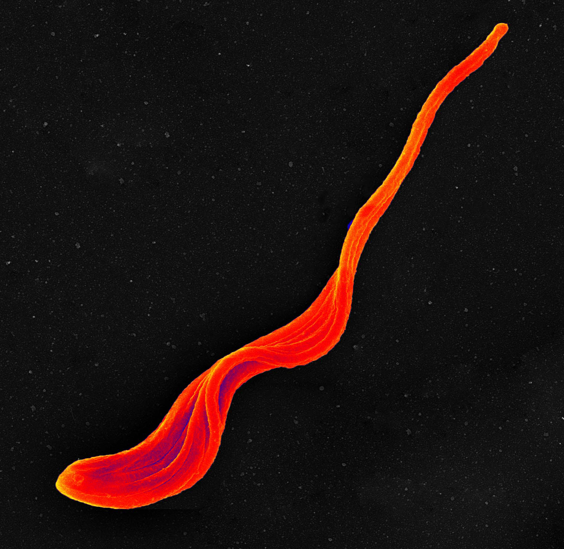 T. vivax bloodstream parasite isolated from blood and visualised using electron microscopy. Image credit: David Goulding Sanger Institute