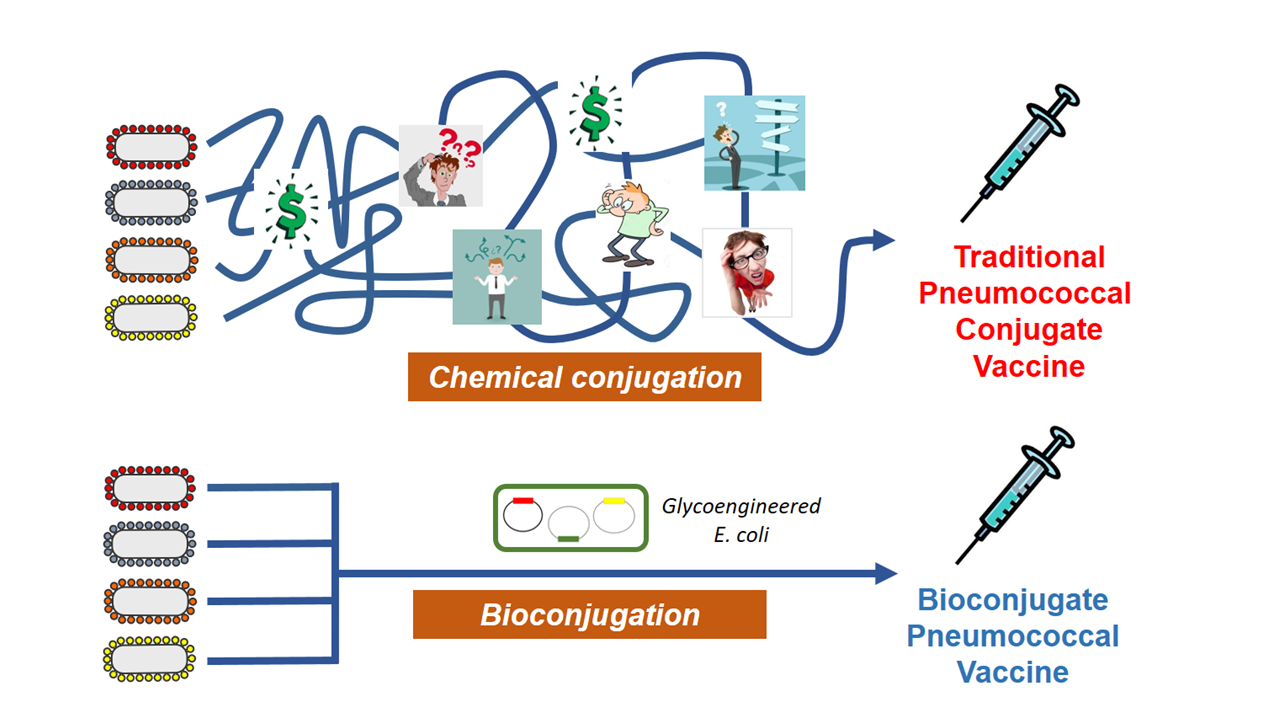 One limitation revolves around the range of polysaccharides that can be enzymatically conjugated. Prior to our publication, there were only two conjugating enzymes used for bioconjugate vaccine development; however, neither of these enzymes are capable of transferring most pneumococcal capsular polysaccharides to proteins. Thus, bioconjugation did not seem like a practical platform for pneumococcal vaccine development.