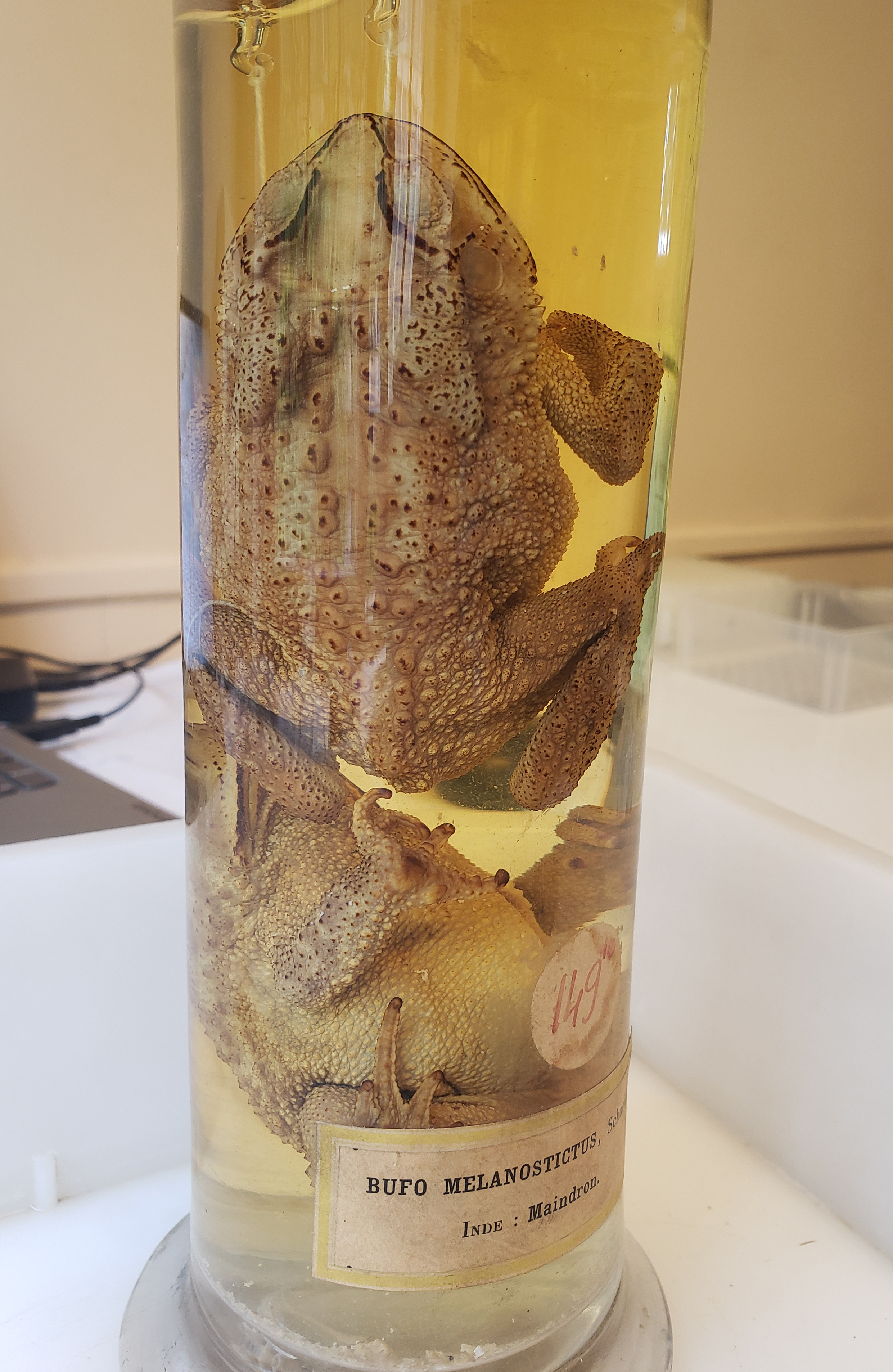 Early 20th century specimens of Asian black-spined toad from India, curated at MHNH, Paris, that could be identified by genetic analyses (© Christophe Dufresnes).