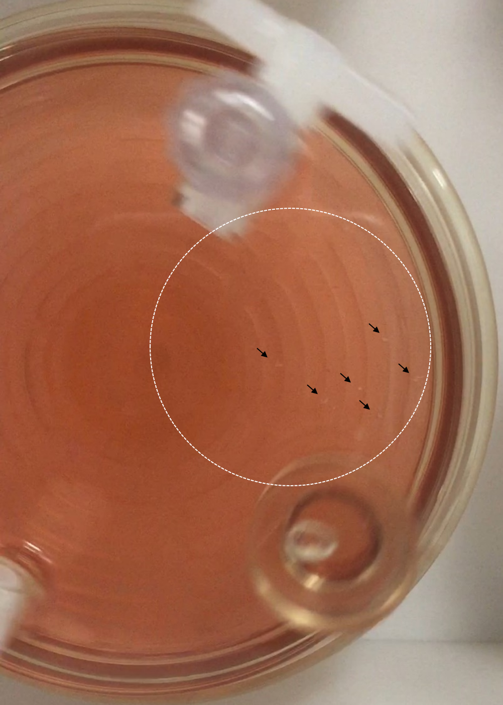 To simulate a reduction in the force of gravity that the femoral head trabeculae are normally adapted to resist, organoids are placed inside a NASA-Synthecon bioreactor, where the laminar movement of their culture medium during rotation suspends constructs (arrows) in a state of orbital buoyancy.