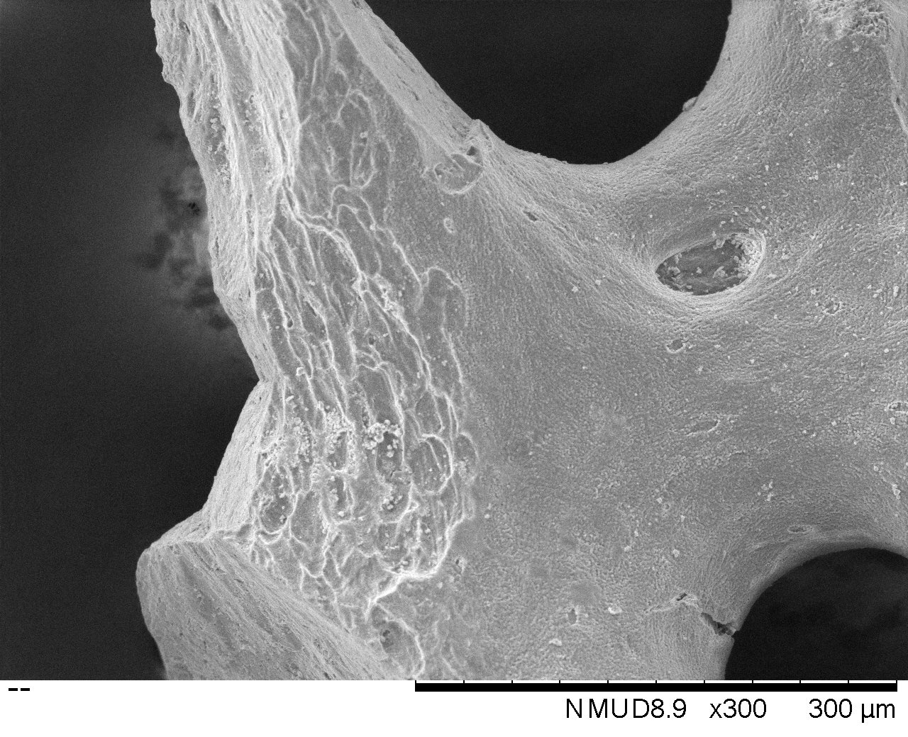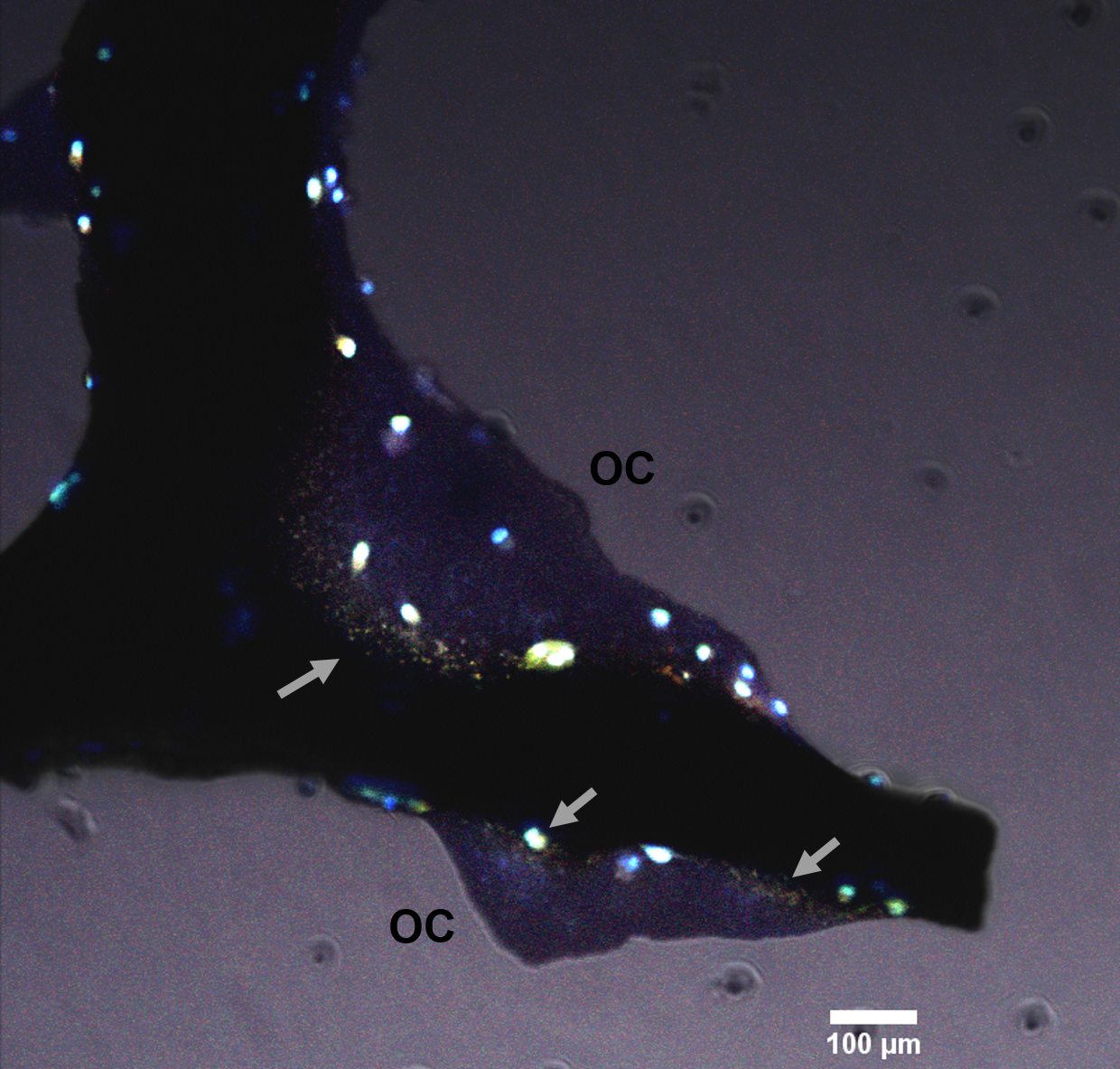 Osteoclasts (OC), the bone resorbing cells, attached to the surface of a trabecular construct.