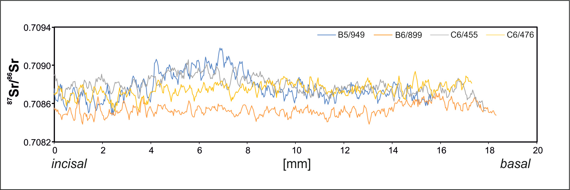 Comparison of strontium isotopic records extracted from studied incisors (Kowalik et al., 2020)