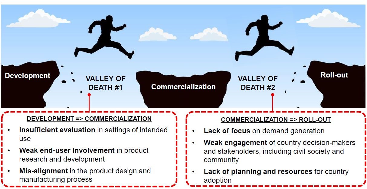 Prof Madhukar Pai elaborated further on the second ‘valley of death’, the gap between developing a device and getting it to the point where it can be taken up in routine practice. “Once you have a commercialised product, what is the pathway for scale? Without scale there is no impact”. He used the example of the TB Diagnostic products pathway to analyse this gap and unpack a major obstacle to getting these devices to the people that need them; “What is the process of the pathway to get them into government and private sectors, and to get people to start using them if you’re a doctor on the frontline and don’t care or know about them?" The whole challenge of taking a quality product and reaching this critical point is a substantial obstacle, as availability does not necessarily mean they can be scaled up and implemented regionally. One step toward bridging this valley could be the recent establishment of the Essential Diagnostics List, a potentially pivotal moment in the history of Global Health Diagnostics. “How can we bend the curve toward faster access, and how can we change the ecosystem to accelerate access to people? We think the essential diagnostics list is one way of doing that” (Prof. Madhukar Pai).