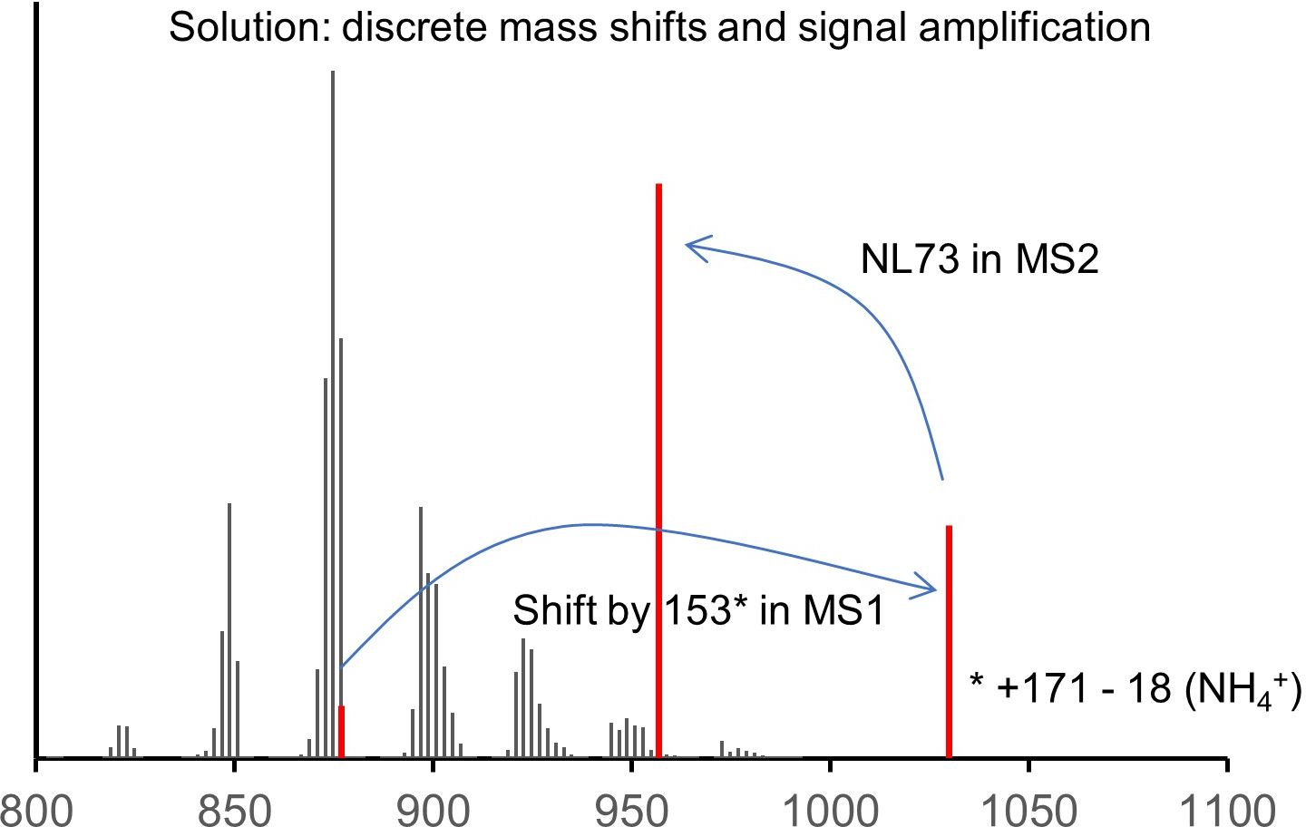 In the new method, the solution to that is quite simple. The triple bond serves as a unique feature discriminating the label from the rest. The click reporter C171 translates the presence of the triple bond into a large mass shift in MS1 and a unique, predictable fragmentation in MS2, and it amplifies the signal by its permanent charge. The structure of the molecule allows for a multiplex approach, saving time and making data better comparable.
