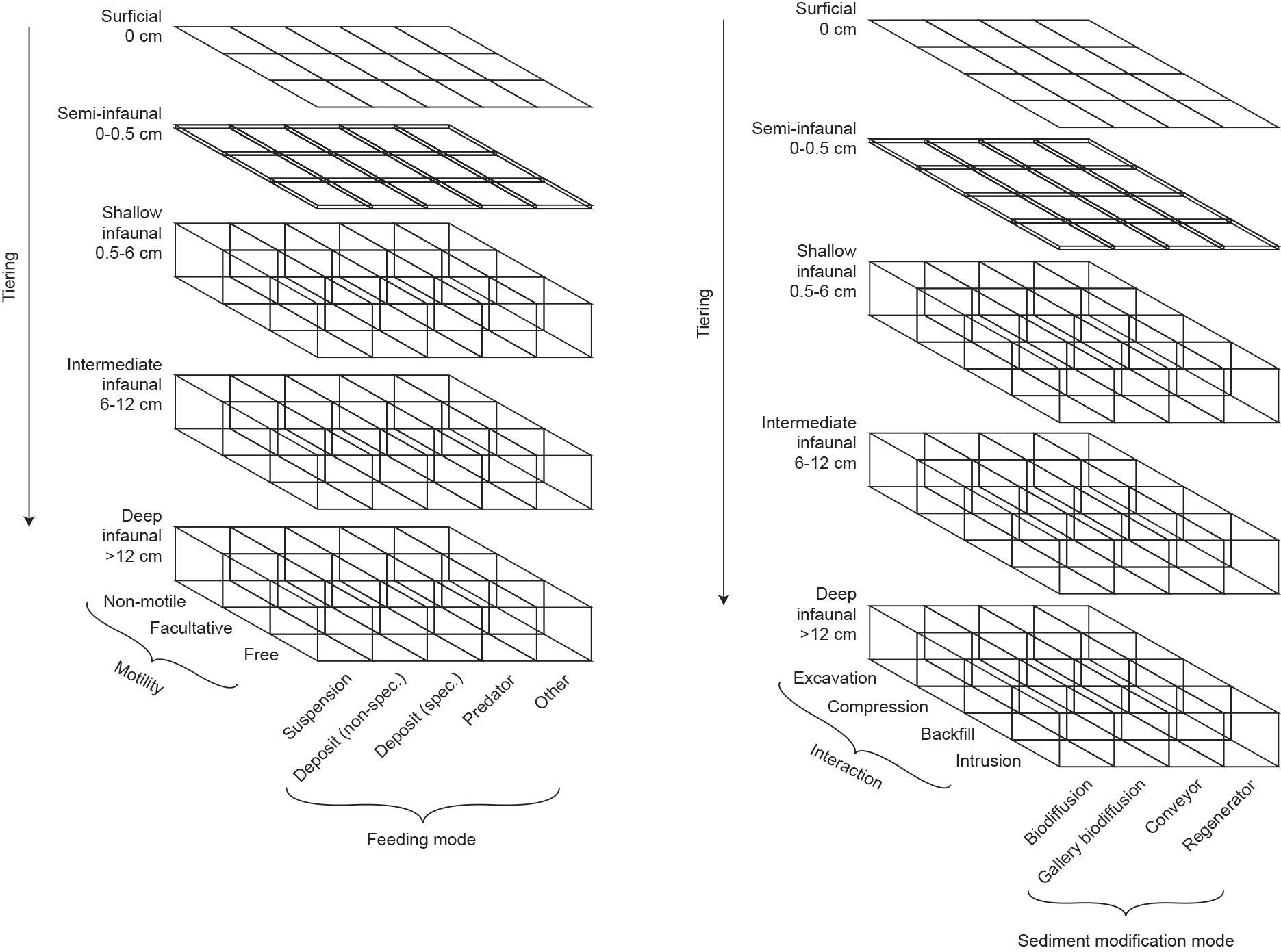 Analytical frameworks for categorizing modes of life and impacts upon sedimentary environments.