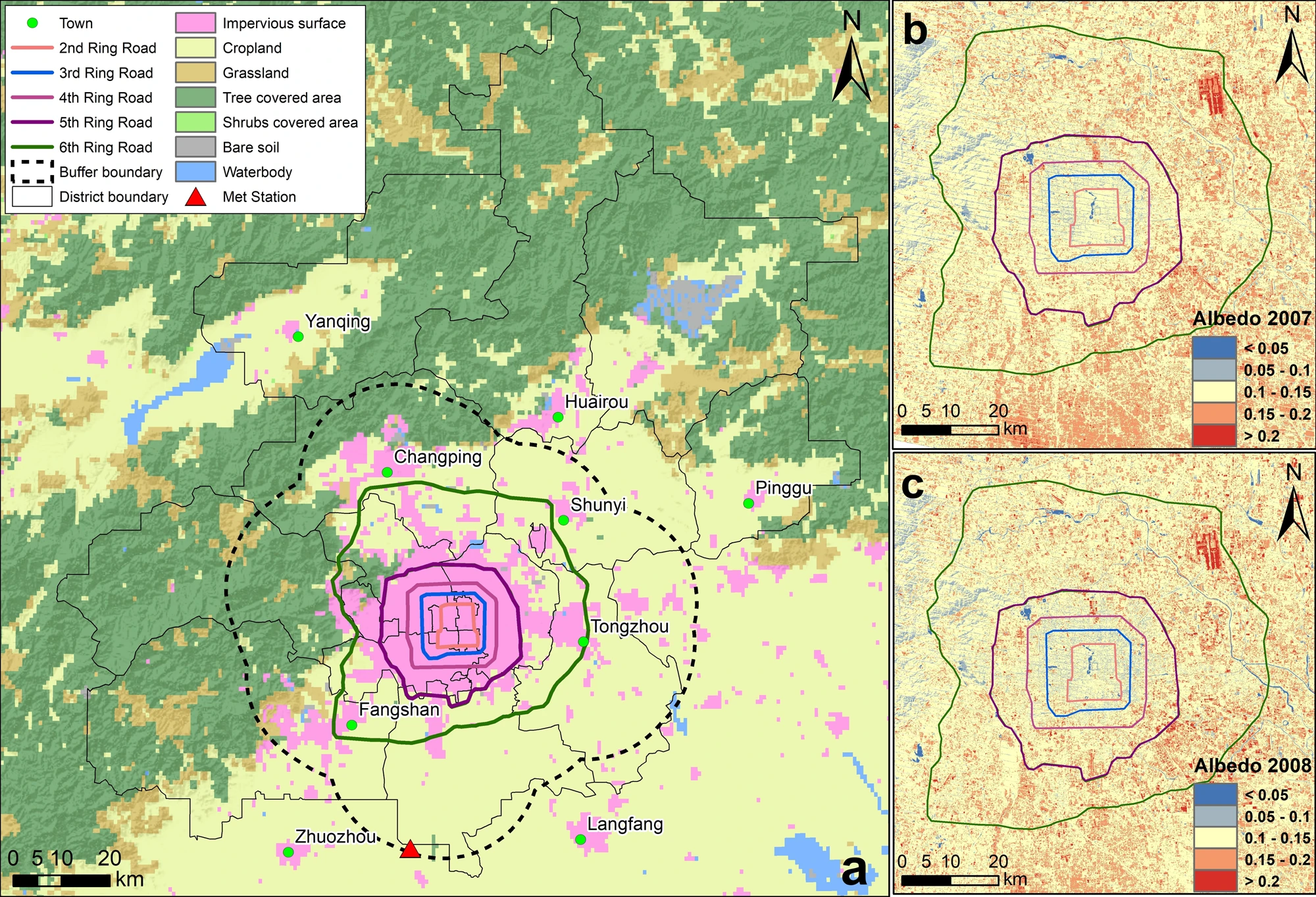 During Beijing 2008 Olympic games, Beijing municipal government implemented a large-scale short-term traffic restriction policy to alleviate the traffic congestion problem. During the Olympic Games from July 20 to September 20, 2008, vehicles with even and odd license plate numbers were alternately allowed on road. Only the vehicles with even plate numbers can be allowed on the road on one day, and the vehicles with odd plate numbers on the following day [2]. This traffic restriction provided an extraordinary opportunity to observe and examine the impact of traffic volume variation on the urban thermal environment.