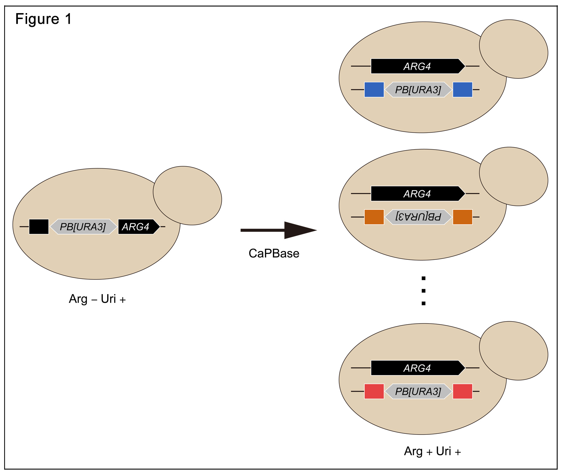 We isolated a highly stable haploid C. albicans strain to host the mutagenesis system. This strain minimizes autodiploidization, an undesirable event that frequently occurred in earlier haploid strains, creating complications. Our PB mutagenesis system has two components (Figure 1): the PB[URA3] cassette containing the inverted terminal repeats of the transposon that flank the URA3 selectable marker and a codon-optimized hyperactive transposase gene, CaPBase, under the control of the doxycycline (Dox)-inducible promoter. PB[URA3] was inserted in the coding region of the ARG4 gene, and the CaPBase cassette in the promoter region of ADH1, yielding the Ura+ Arg- starter strain. Upon Dox induction of CaPBase, PB[URA3] is excised from the ARG4 donor locus and reintegrated at another locus, restoring the function of ARG4 and creating an insertional mutation. Then, transposants are enriched by growing the Dox-induced cell population in medium lacking arginine and uridine. This simple procedure can produce a library with millions of independent mutants. After screening the library for the desired phenotype, such as drug resistance, genes responsible for the phenotype can be easily identified by mapping the PB insertion sites, as each mutant contains a single copy of PB.
