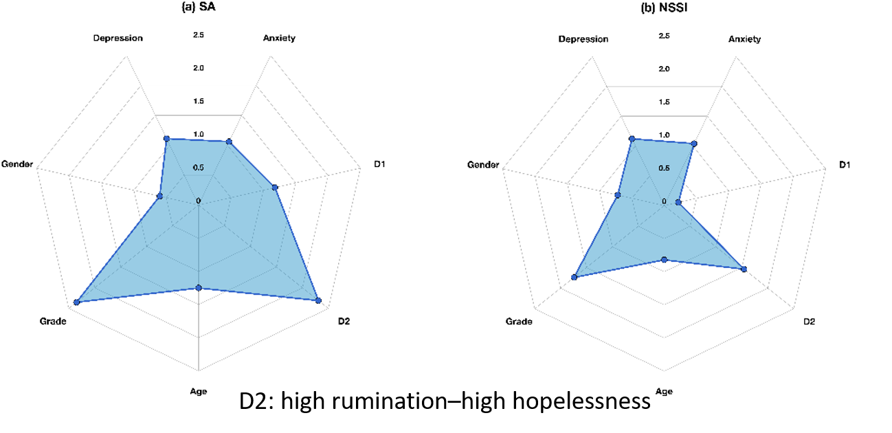 To find out, our team surveyed the high school students, asking them detailed questions about their mental health, their history of self-harm, how they view their past, and how they anticipate their future. By adopting a dimensional approach to mental health, we mapped where each teenager stood on the dimensions of rumination and hopelessness.
