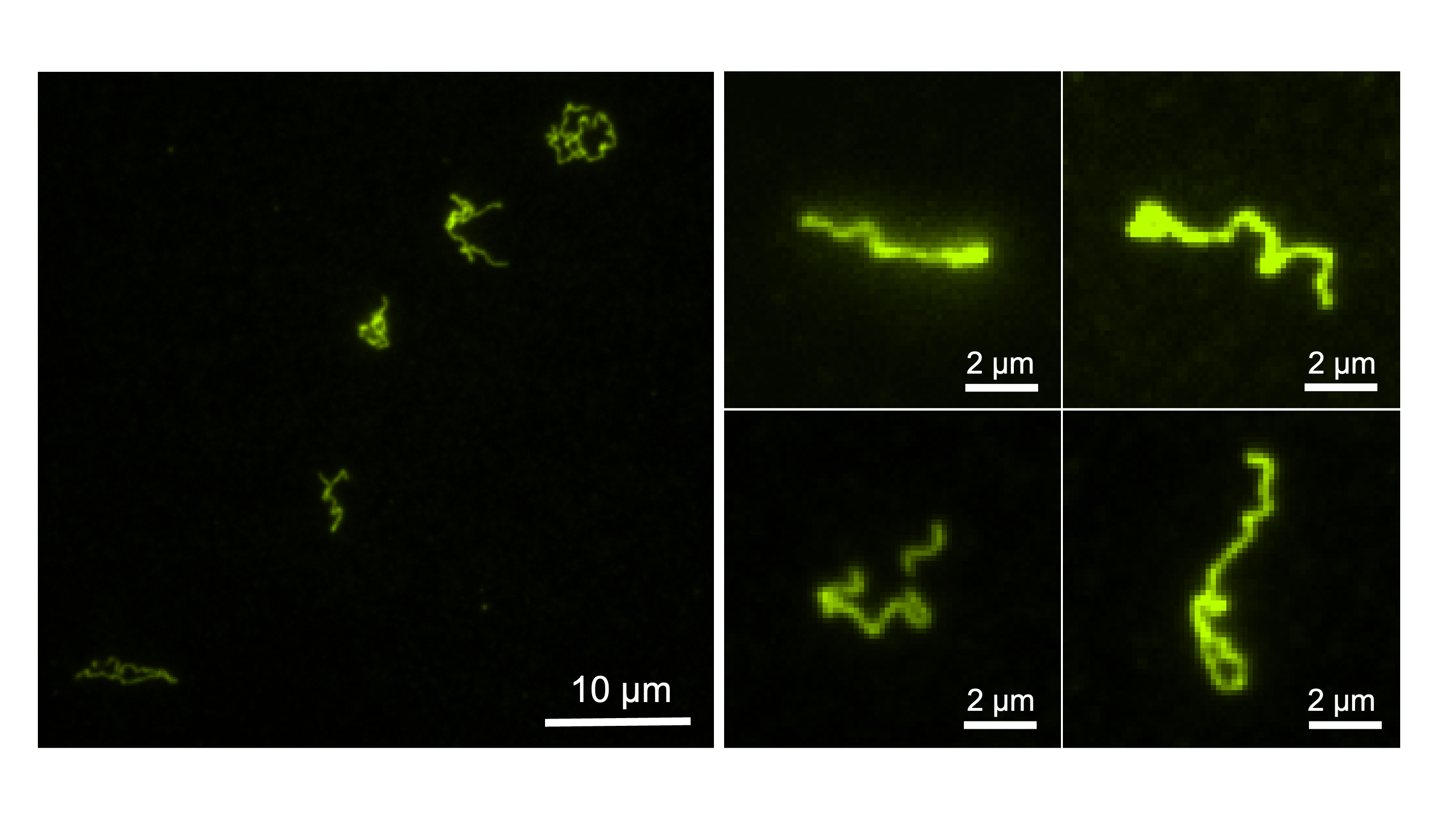So if heat was required to drive the nanofiber formation, what happened when the fibers returned to room temperature? We found that the nanofibers were metastable: once cooled they slowly disassembled and mixed. In this way, our system resembled biological ones, where the default state is unassembled, and energy is needed to grow fibers when desired. Another parallel we saw between our DNA polymer and biological systems was the need for the DNA-polymer to assume a specific conformation, much like polymer folding.