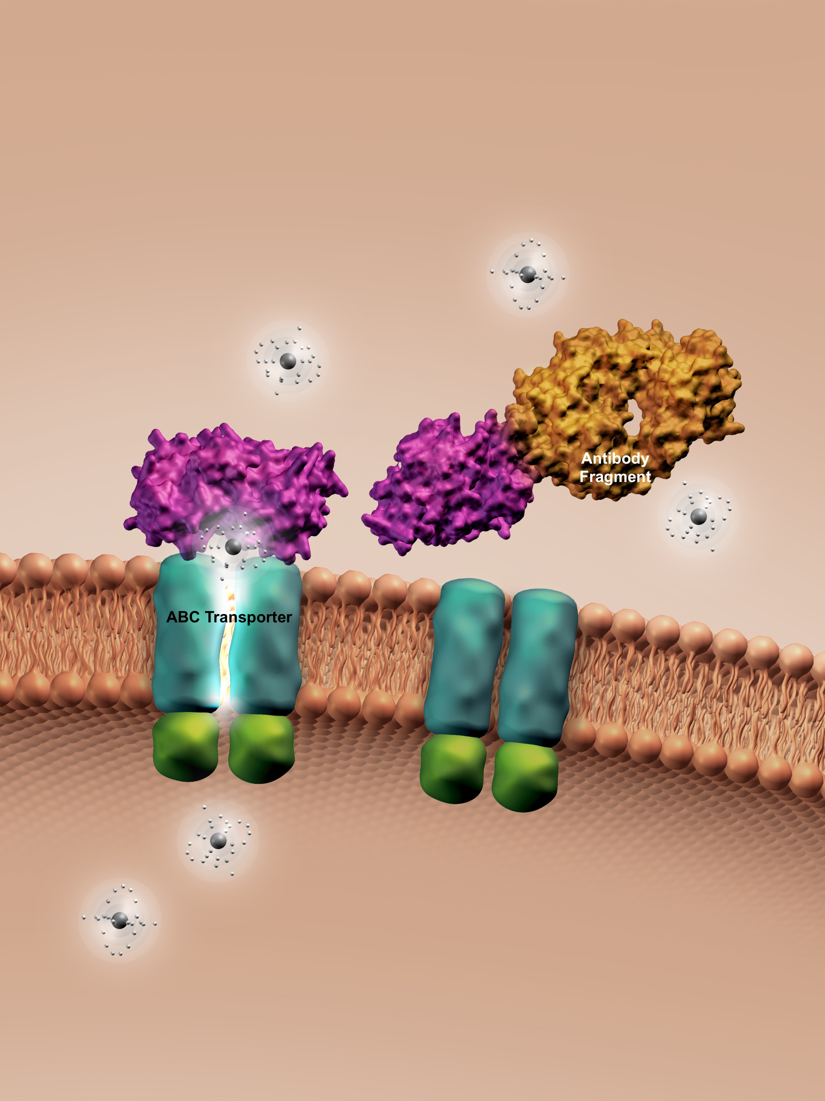 Among the many tools that bacteria use to control the transport of molecules to and from their environment are membrane-spanning ATP-binding cassette (ABC) transporters. These essential molecular machines use the power of ATP hydrolysis to catalyze substrate transport across a membrane. It is somewhat surprising that no antibiotics targeting ABC transporters have yet been clinically approved, despite the importance of this ubiquitous protein family to the survival of all bacteria.