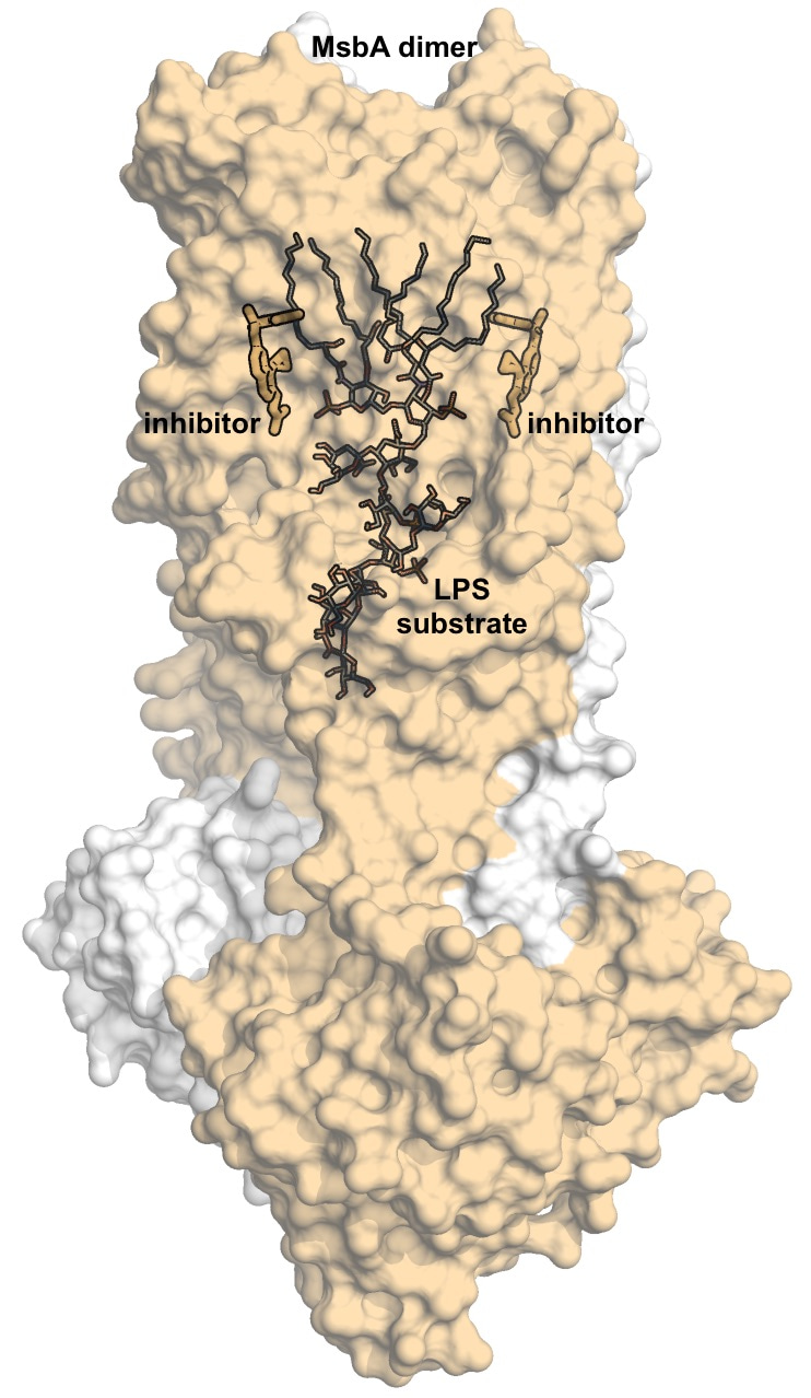 Structure of the MsbA dimer in complex with inhibitor and LPS.