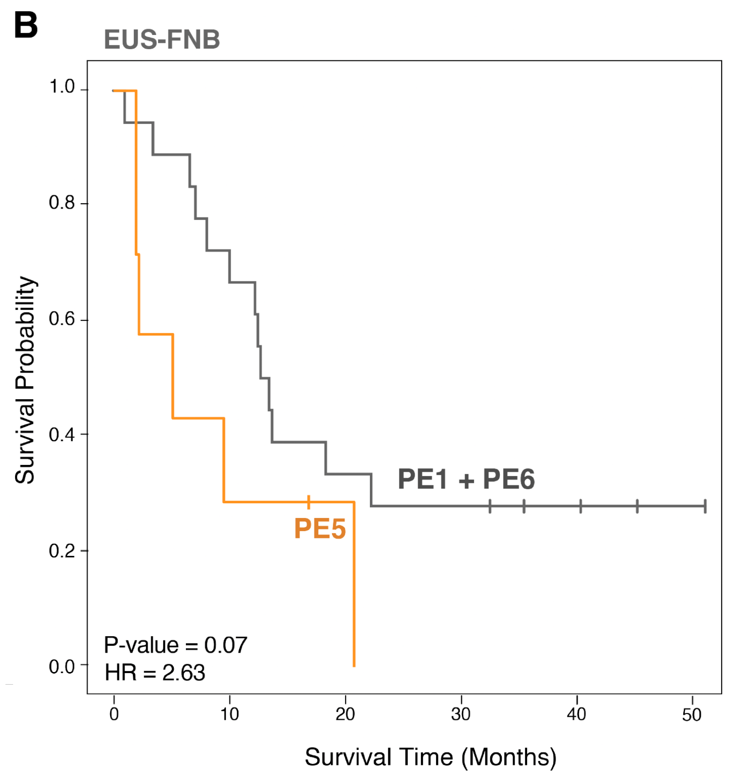 Importantly, PE5’s negative association with survival was also present in EUS-FNB samples taken at the time of diagnosis, opening the possibility of more upfront clinical decision-making in the future.