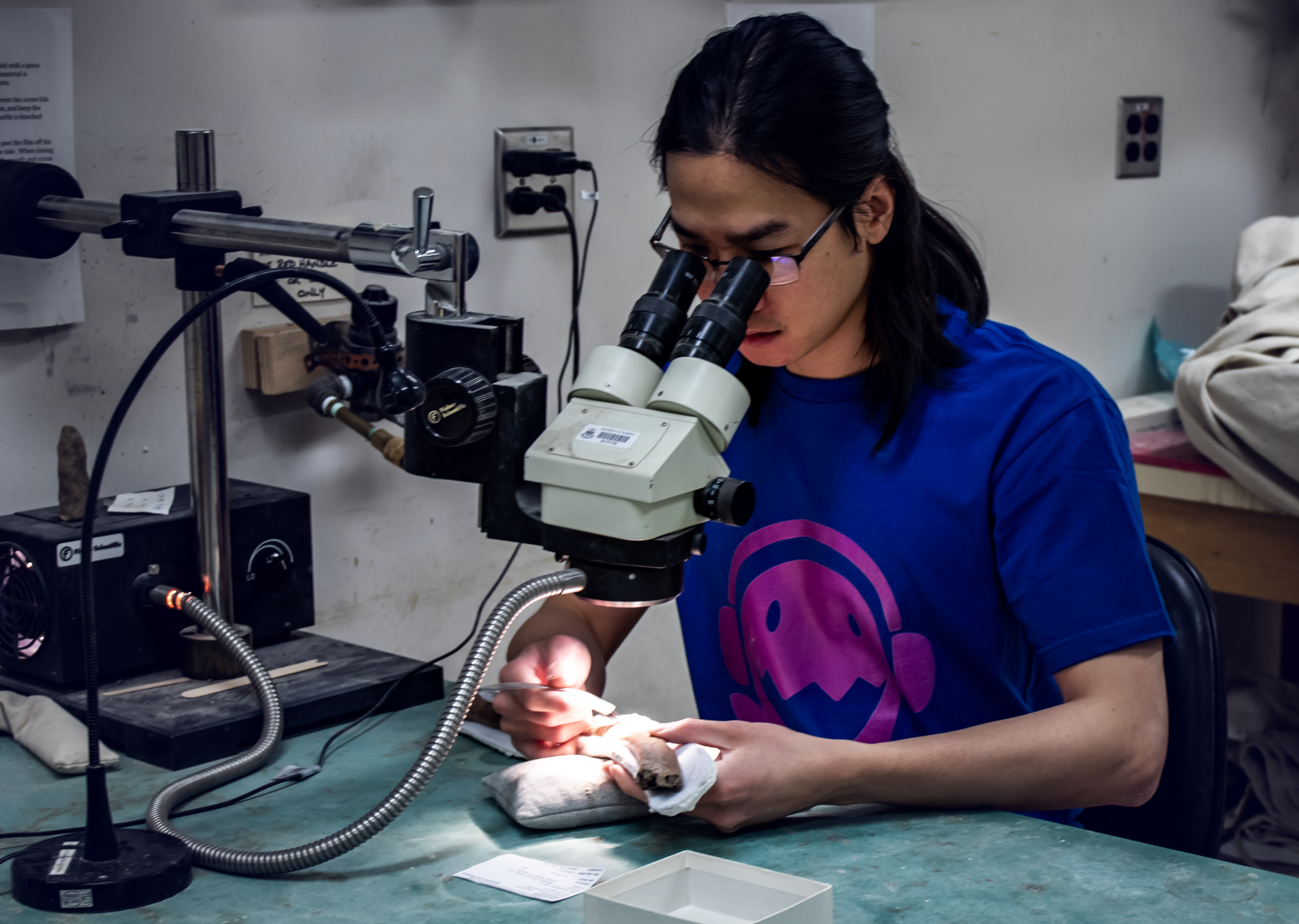 With the help of funds from the Dinosaur Research Institute, I went to look for uncinate scars in major palaeontological collections in Canada, China, and the United States. Staff at the museums I visited were helpful and hospitable, and at Yale Peabody Museum and the New Mexico Museum of Natural History were even gracious enough to remove troublesome rock from specimens in their collections that I wanted to scrutinise. At the American Museum of Natural History in New York, I was lucky enough to find an incomplete fossil crocodylian rib bearing an uncinate scar that looked nearly identical to the modern crocodile uncinate scars we’d seen in South Africa. This gave our spirits a nice boost, as the observation provided evidence to validate our use of uncinate scars to infer the presence of uncinate processes.