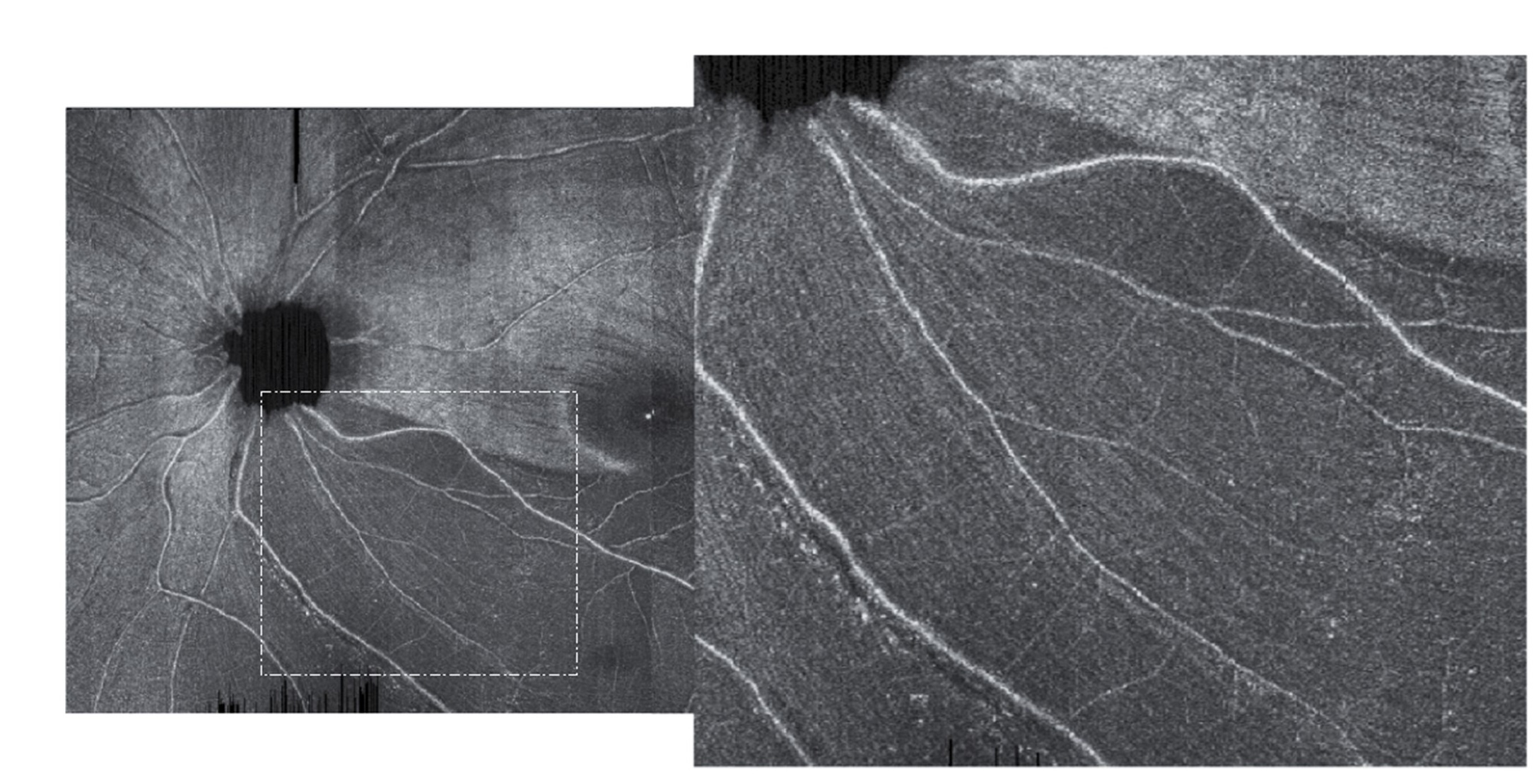 What motivated us to develop ROTA? Whereas OCT measurement of RNFL thickness has a relatively low test-retest variability, false negatives and false positives are common, which in part is attributed to the wide physiological variations in the distribution of the retinal axonal fiber bundles. The sensitivities of best-performing OCT parameters for detection of RNFL thickness abnormalities have been shown to be 65%-75% at specificities of 90%-95%.4 In eyes with high myopia, the specificity of OCT RNFL thickness analysis has been about 30%.5 The fact that individual axonal fiber bundles are not discernible from conventional RNFL thickness analysis has compromised the diagnostic performance of OCT to detect glaucoma. We have been studying the application of OCT for RNFL analysis for more than 10 years. The staggering challenges in discerning RNFL defects in early glaucoma motivated our team to engineer ROTA, or RNFL Optical Texture Analysis (ROTA). The methodology of ROTA and the clinical validation study were published in the March issue of Nature Biomedical Engineering.6 Just as the retinal capillary network embedded in the OCT scans can be visualized via OCT angiography analysis, the trajectorial details of individual axonal fiber bundles can be unveiled via extracting the axonal fiber bundles optical texture signature from standard OCT scans. The axonal fiber bundles exhibit a higher reflectance relative to the surrounding blood vessels and connective tissues because of the increased scattering of the axonal cytoskeleton. Applying a series of non-linear transformation of the normalized axonal fiber bundle reflectance signal, the trajectories of individual axonal fiber bundles can be uncovered, which enables intuitive visualization of RNFL defects that would otherwise be missed by conventional OCT analysis and red-free photography.