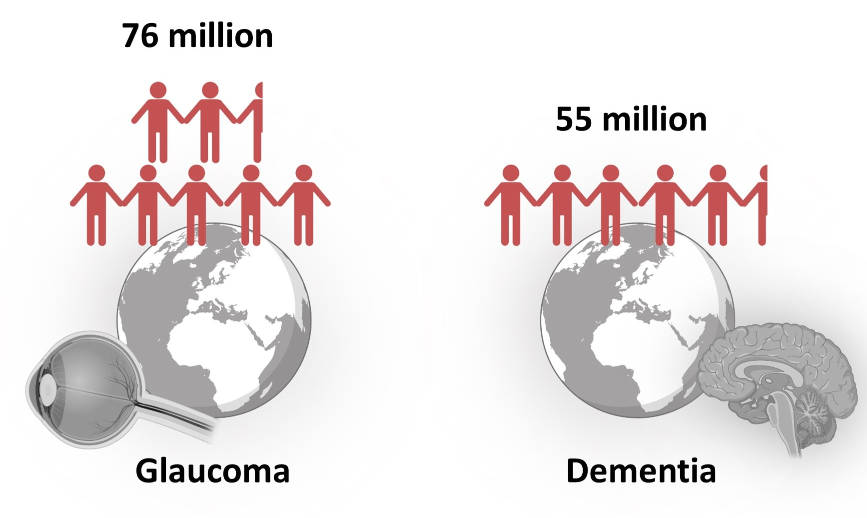 Why early diagnosis of glaucoma is important? Glaucoma, a chronic progressive optic neuropathy, is the most common neurodegenerative disease of the central nervous system. While 55 million people have dementia worldwide in which Alzheimer’s disease may contribute to 60-70% of cases,1 76 million people live with glaucoma.2,3 Characterized by chronic degeneration of retinal ganglion cells, patients with glaucoma often are not aware of progressive decline in vision until the late stages when the visual loss becomes permanent. Early diagnosis of glaucoma for therapeutic intervention is therefore critical to curb glaucoma blindness.