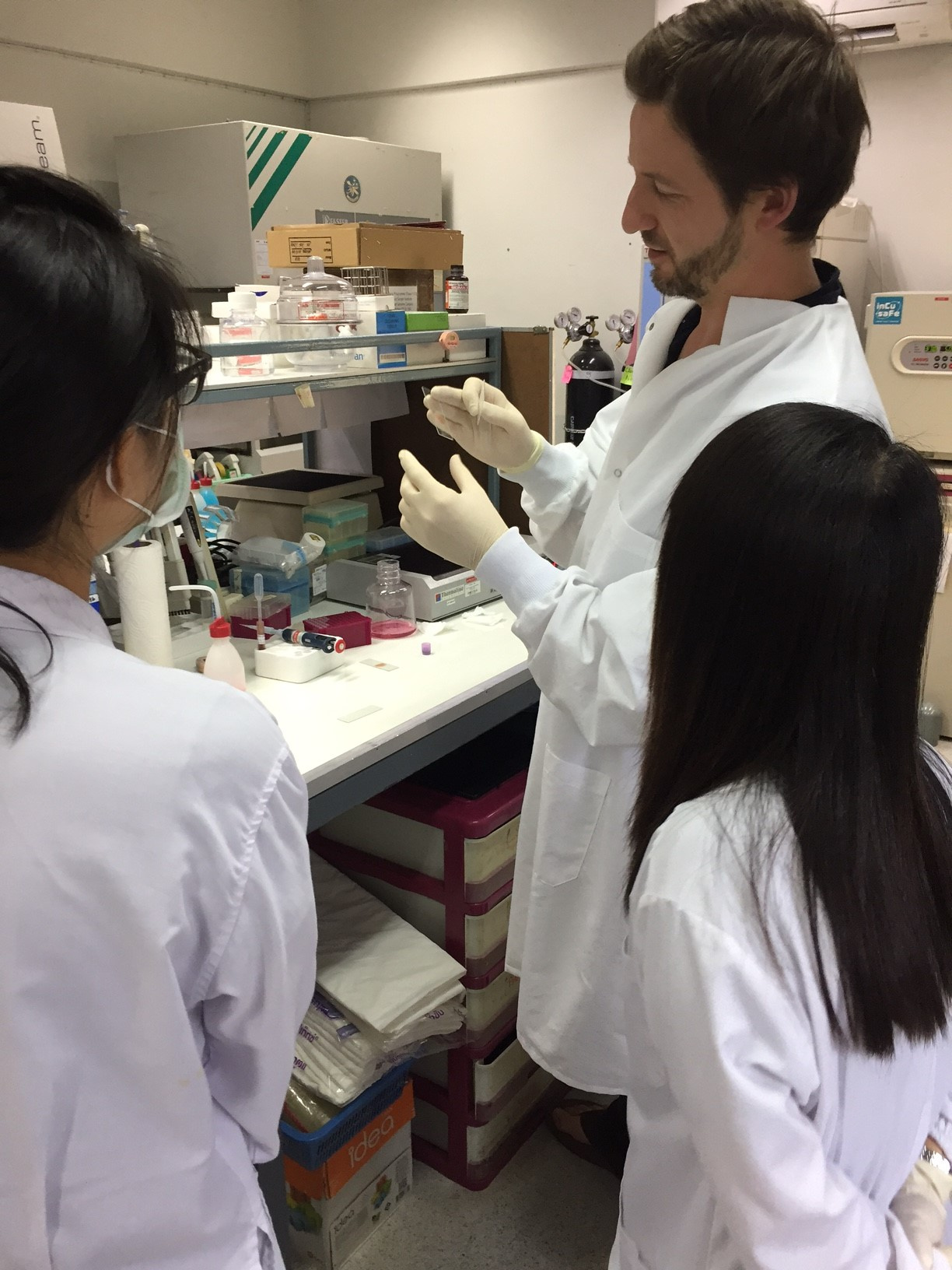 Although the parasite cannot readily be maintained in long term culture, it can be kept alive for one or two cycles of blood cell infection. The best option was therefore to travel to a vivax endemic country and test antibodies against fresh clinical samples in an ex-vivo invasion assay. Tom Rawlinson, a clinically trained graduate student from the Draper group therefore jumped on a plane to head to Thailand where he worked with Bruce Russell and Francois Nosten’s groups.