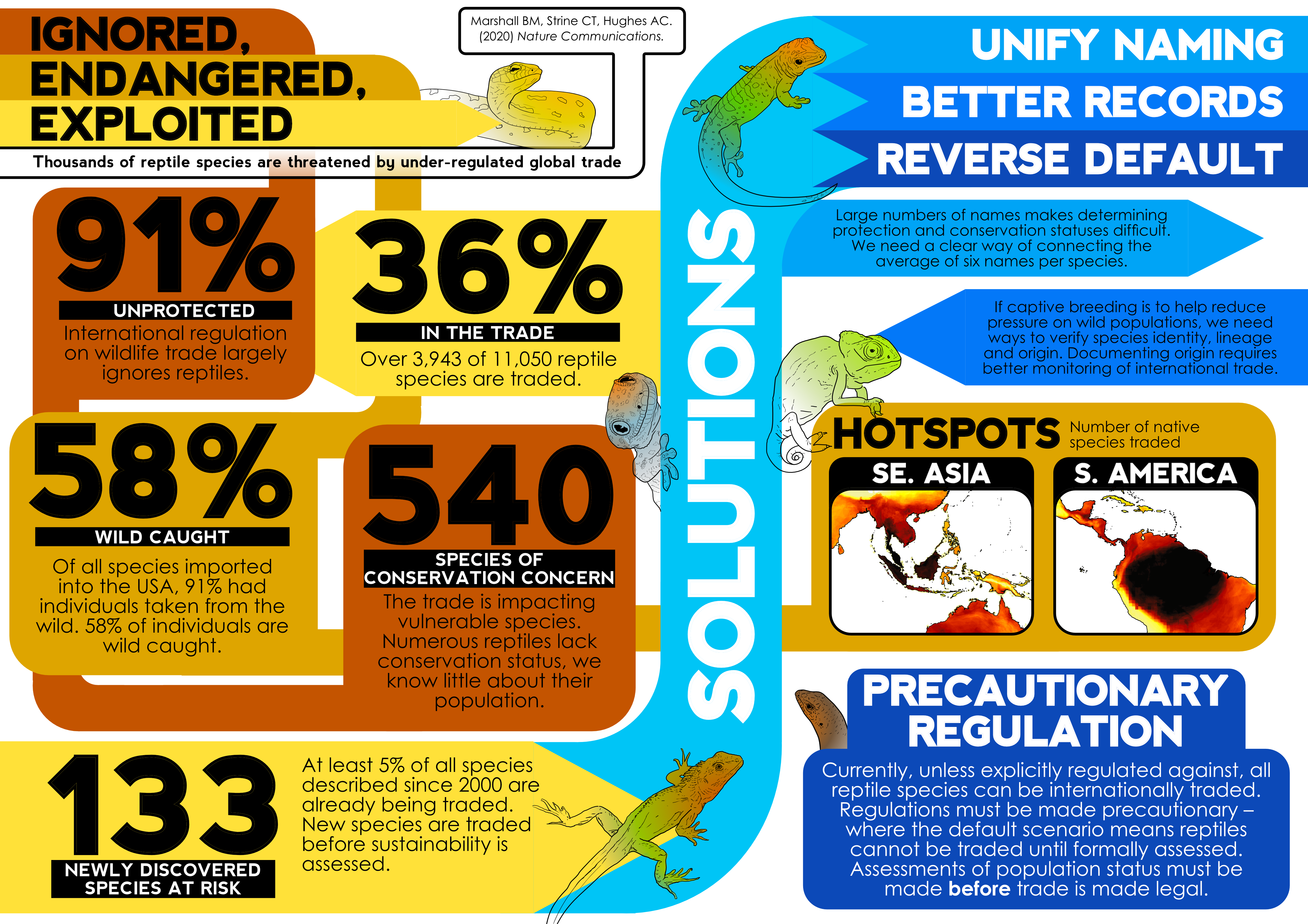 Whilst reptiles make great pets and education tools (and as authors we have used them as both), this can’t be at the expense of species survival, especially given the high mortality in wild-caught reptiles, the risk of zoonoses, and the risk of extinction continued pet trade from the wild poses to these populations. We need better means of regulating trade, providing protection as a default, and working to stop wild-capture unless shown to be sustainable for a species; which is far from the case at the moment.