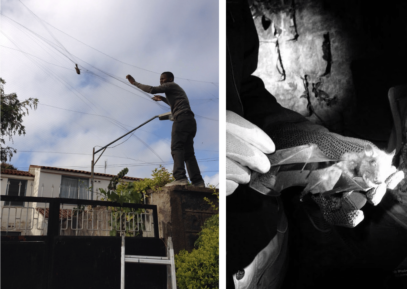 To catch bats, the same team, having checked rodent traps, processed samples in the lab and then had a rest, had to work through dusk and into the early night.