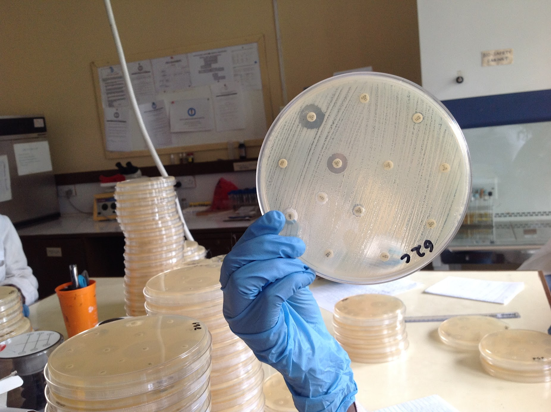 Each laboratory conducted a full microbiological work-up on each sample (including AST – phenotypic antimicrobial susceptibility testing), engaging multiple students to learn microbiological techniques through that effort. When the project started, the costs of tools to characterise the molecular diversity of the E. coli isolates was a major concern. At the very beginning, it seemed that the cost of whole-genome sequencing on this scale would be prohibitive, and samples in the field were randomly allocated ‘red dots’ (see picture) to denote which ones should go for sequencing. As the project proceeded, the costs and availability of sequencing changed though, and eventually, an isolate from each and every one of the hosts sampled was sequenced (and in some cases, up to 10 per host - see supplementary information in the paper).