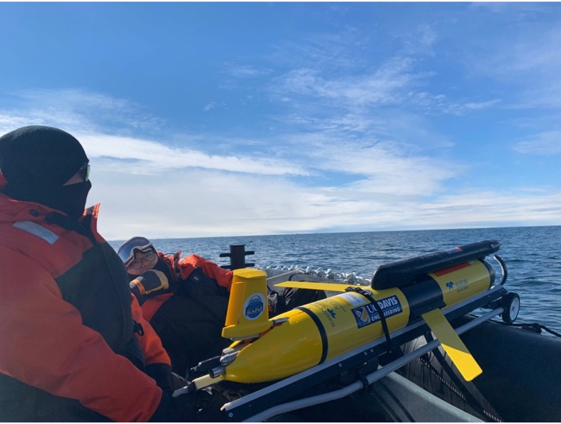 Drew Friedrichs and Seung-Tae Yoon in TNB deploying the Slocum glider Stormy, equipped with a Rockland Scientific MicroRider, from the R/V Araon’s zodiac (photo by Sébastien Levanchy).