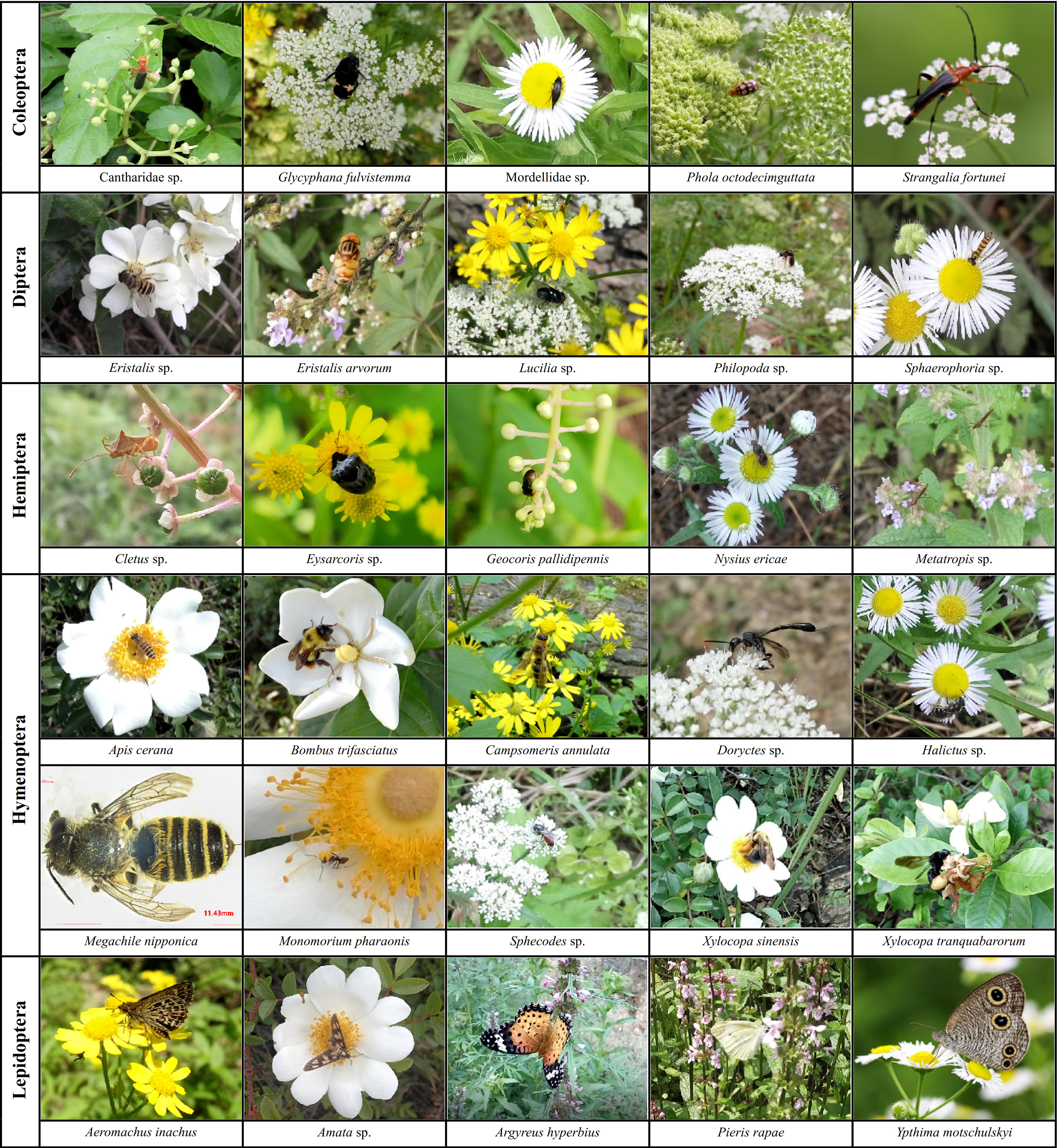 Fig. 3. The common flower-visiting insects of the Thousand Island Lake, China. Photo credit: Peng Ren.