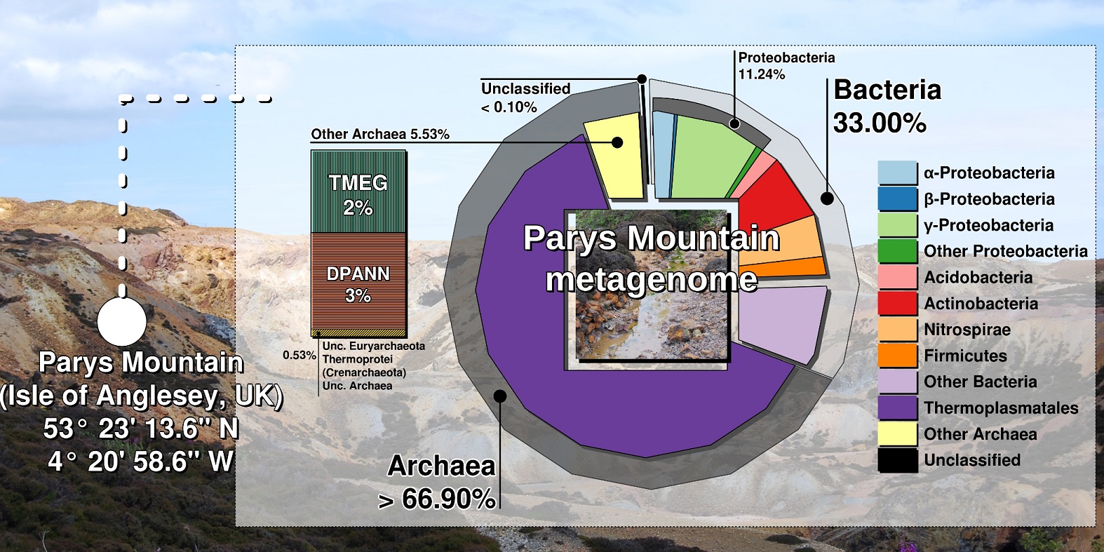 Overall, our results were counterintuitive: it is commonly accepted that acidophilic bacteria dominate low- and moderate-temperature environments, exemplified by Parys Mountain, which is exposed to the cool maritime climate. Many questions related to acidophilic Thermoplasmata still need to be addressed, e.g. the functions of predominant and “rare” community members and the reason of a very limited fraction of Thermoplasmata being cultured. Therefore, we are looking forward to sampling Parys Mountain in the near future.