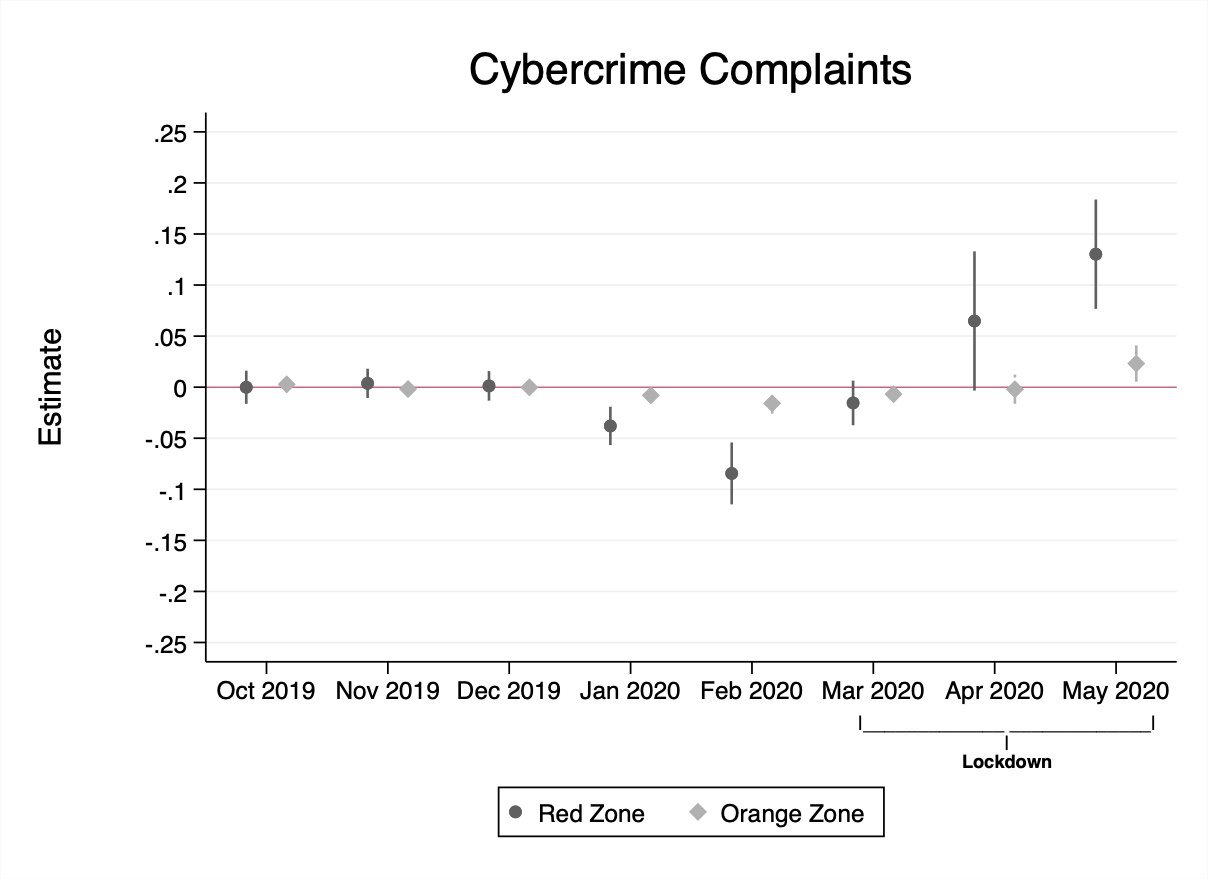 Next, we extend our analysis to study the impacts of the lockdowns in India up to a year after they were first introduced. This analysis should be interpreted with caution, as state governments and local bodies were given autonomy for the demarcation of zone colour categories under the phased relaxation of lockdown measures. Furthermore, lockdown measures were implemented below the district level, such as in containment areas and buffer zones. As we use the central government’s zone classification for districts announced in April 2020, we interpret our results as reflecting the medium-term impacts of the central government’s lockdown measures from April to May 2020. Overall, the impacts of the lockdowns on cybercrime, rape and sexual assault complaints fade out approximately 6 months after the end of the central government-mandated lockdowns in May 2020. However, domestic violence complaints continue to increase after the introduction of lockdown measures and remain significantly different from the pre-lockdown period up to 1 year after the lockdowns were first imposed.