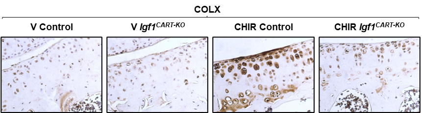 The results validated our hypothesis — mice lacking IGF1 in their cartilage were protected from the joint damage that is associated with excessive Wnt activation.