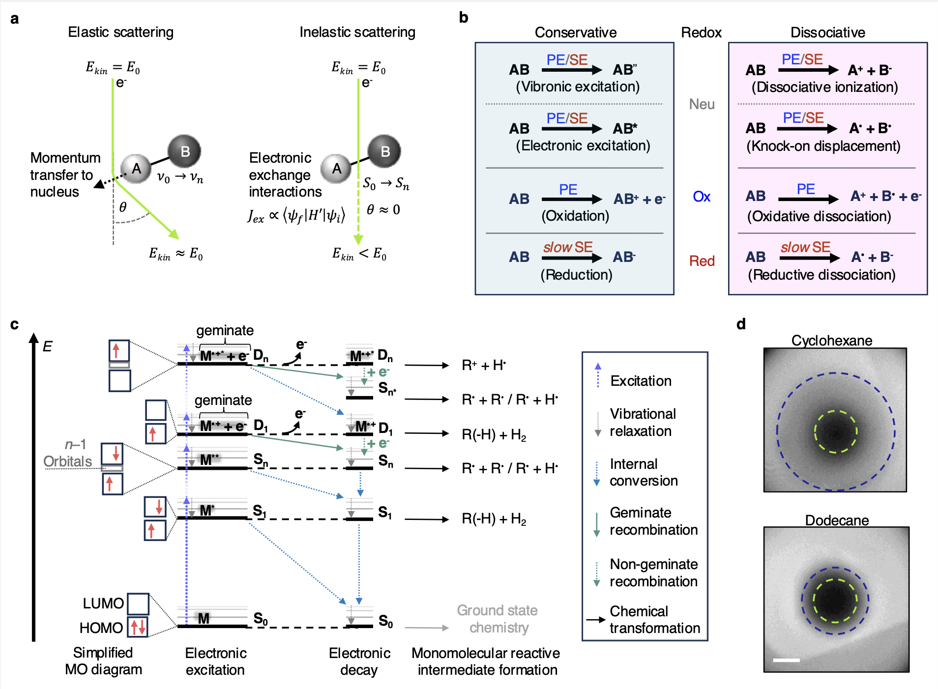 In our recent study pubished in ACS Nano we took a significant step forward in bridging this knowledge gap by systematically investigating how e-beams interact with organic molecules at the molecular level. Therefore, we employed operando liquid-phase transmission electron microscopy (TEM), combined with density functional theory (DFT) calculations and mathematical random search algorithms, to map out and quantify e-beam-induced reactions in real time. Our findings offer fresh insights into the fundamental chemistry of accelerated electrons, paving the way for controlled nanoscale material manipulation.