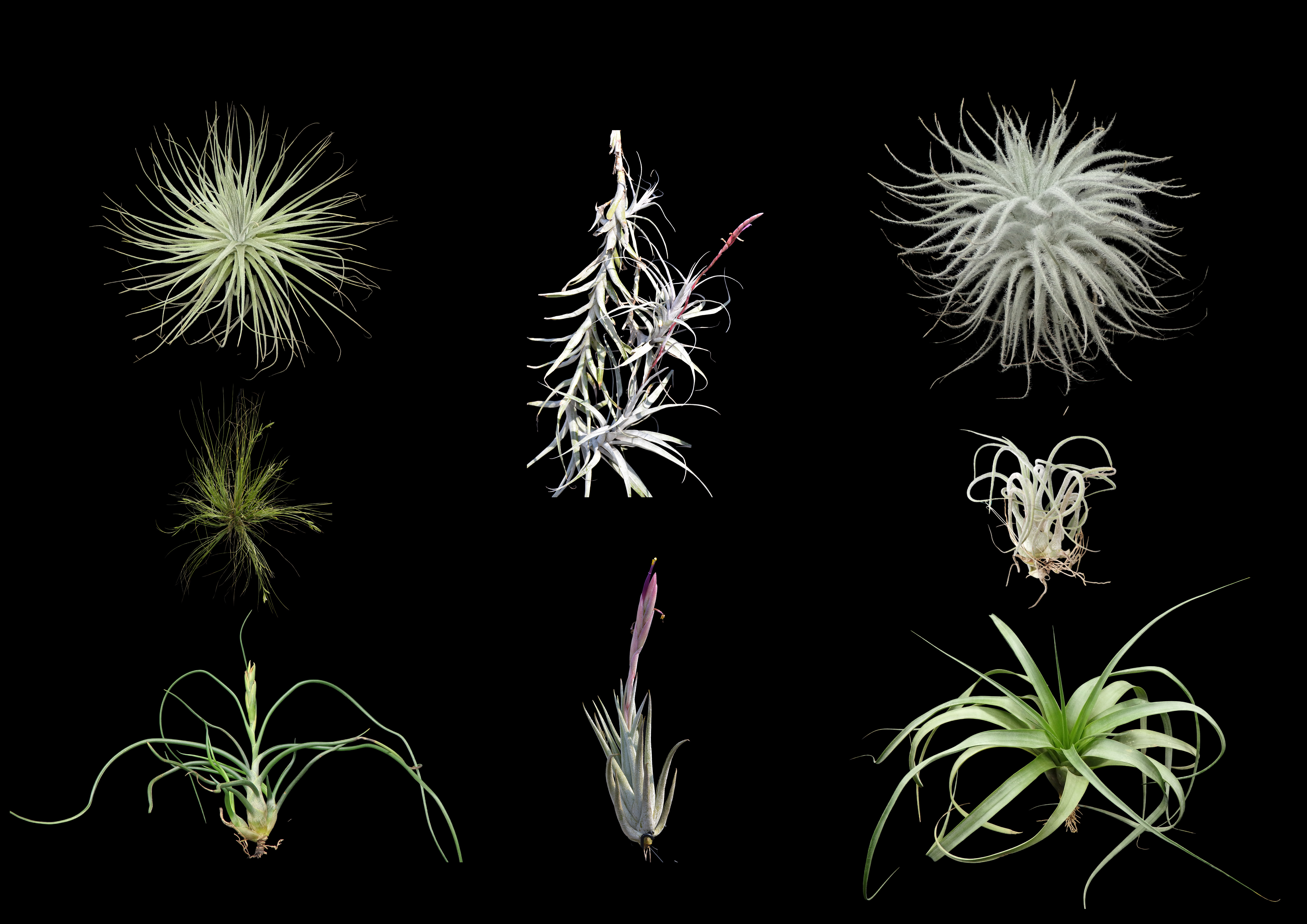 Can plants live without roots and soil? The answer is "yes," and air plants, or epiphytic Tillandsias, are an interesting and vivid exemplar of surviving in aerial niches. These marvelous plants belong to the Bromeliaceae family and are renowned for their extraordinary capacities to survive without soil, evolving into specialized leaf trichomes that enable the absorptive functions typically served by roots (Fig. 1).