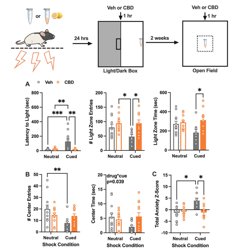 In recent years, there has been a surge of interest in the therapeutic potential of cannabidiol (CBD), a non-intoxicating compound found in cannabis. While anecdotal evidence suggests that CBD may help reduce anxiety, its efficacy in clinical studies has been inconclusive. Our study explored how CBD mitigates anxiety triggered by learned environmental cues associated with distressing events while identifying the biological mechanisms responsible for these effects.