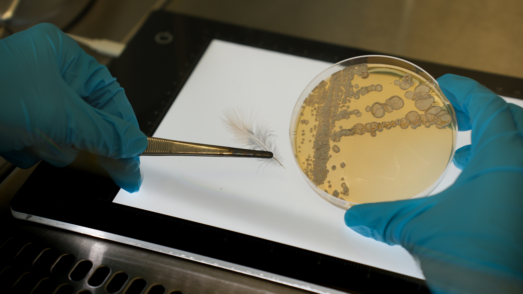 The uropygial (preen) gland of birds is located on the rump (on the dorsal side of the beginning of the tail), where it produces secretions that birds apply to their feathers. These gland secretions contain chemical compounds that allow for waterproofing and optimal feather cleaning. Multiple in silico studies have shown that these glands host diverse communities of bacterial symbionts, with potential antimicrobial activities, and thus might play crucial defensive roles. However, we realized that compared to other terrestrial systems, hardly any wet-lab experiments have yet been performed to validate sequencing data and identify the origin of bioactivities of these microbes.