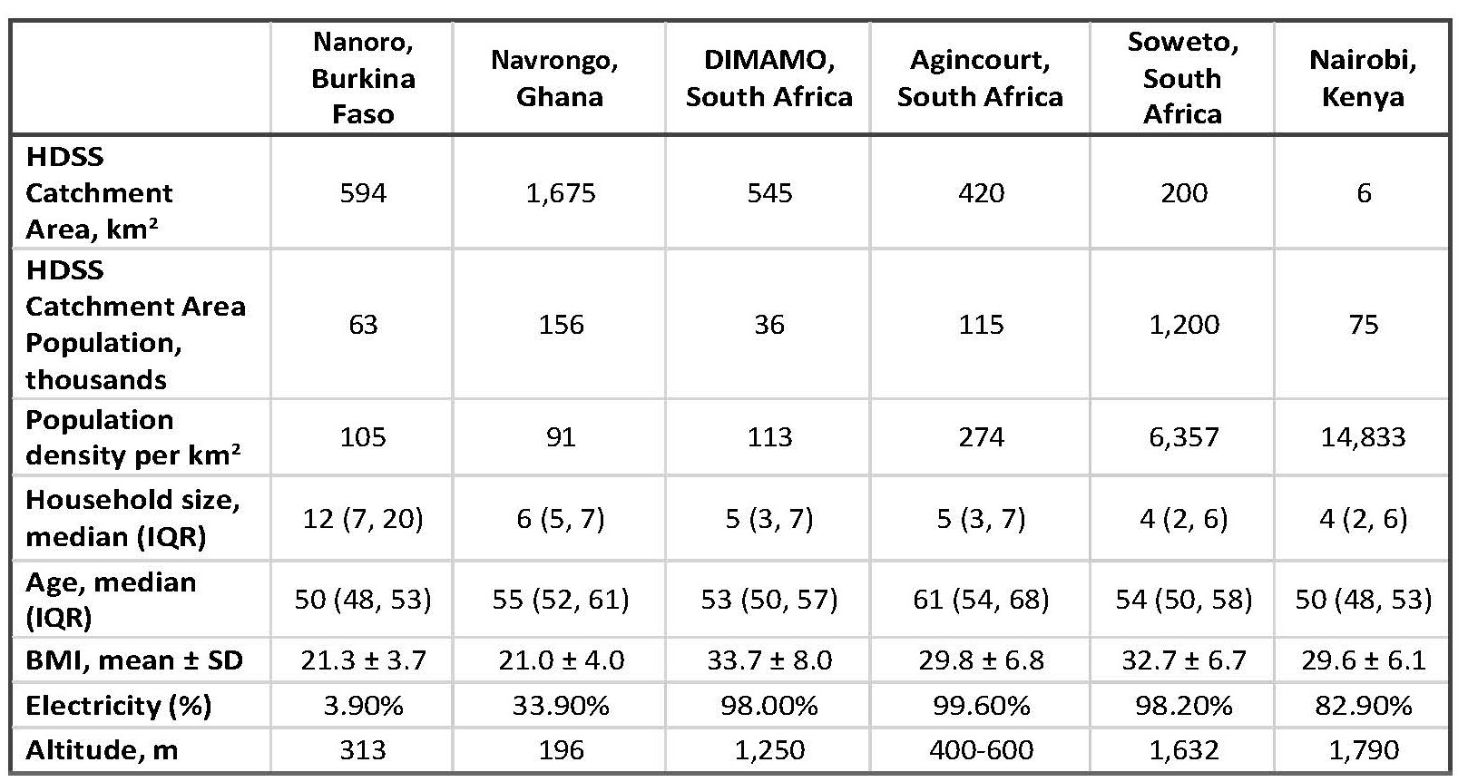 - Rapidly transitioning rural areas in Agincourt and DIMAMO, South Africa (SA).