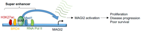 Figure1. Schematic diagram showing SE-driven MAGI2 activation is dependent, at least partially, on oncogenic transcription factor MAF in MM.
