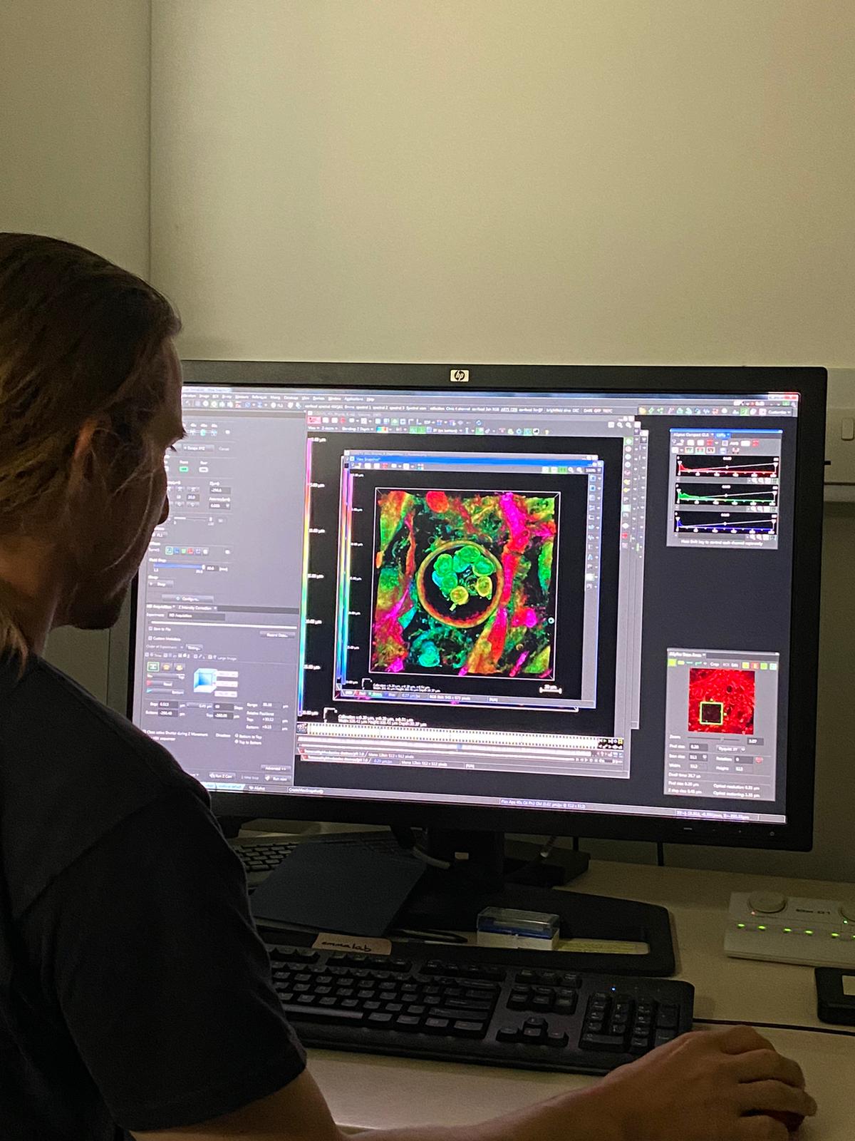 The development of confocal laser scanning microscopy has provided us with a new tool to investigate the world of the Rhynie Chert. Through numerous trial-and-error experiments over the past decade at the Imaging and Analysis Centre of the Natural History Museum London, we have learnt how to apply this relatively novel technique to these cherts. Unlike traditional bright-field microscopy, confocal laser microscopy significantly enhances the image's clarity and detail. This allows researchers to visualize minute three-dimensional structures with unprecedented precision. The confocal datasets also allow us to digitally reconstruct the fungal structures using various imaging softwares. The delicate and intricately preserved features of Rhynie Chert fossils are brought to life in vivid detail. This approach has enabled us to describe several zoosporic fungi (see: Strullu-Derrien et al., 2015. Botanical Journal of the linnean Society 179, 201–213; Strullu-Derrien et al., 2016. PLoS ONE 11(12): e0167301; Strullu-Derrien et al., 2018. Philosophical Transactions of the Royal Society B 373: 20170146).