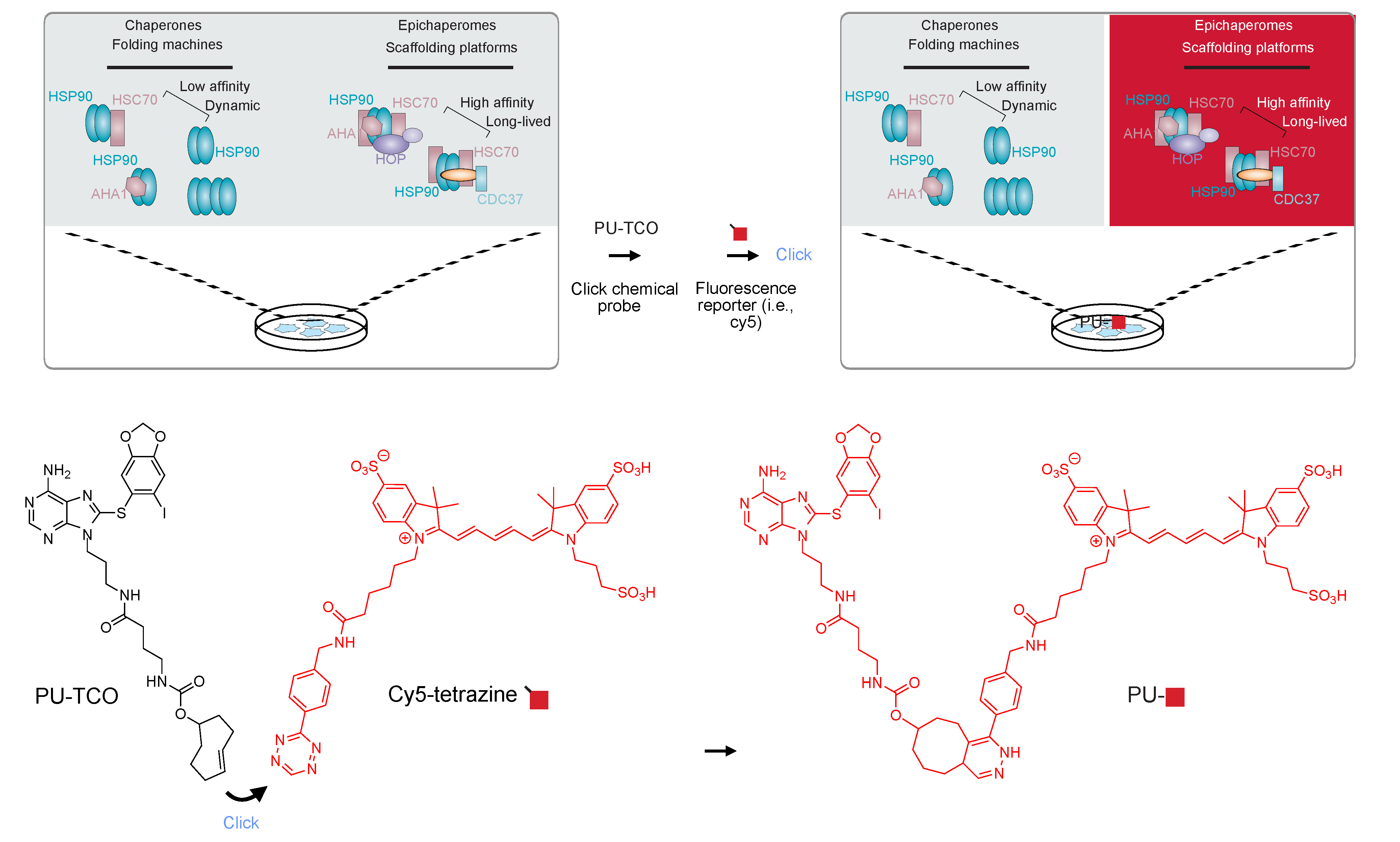 In response to this challenge, Bay et al. unveil the PU-TCO clickable epichaperome probe and PU-NTCO control probe [4]. Through meticulous synthesis and rigorous characterization, conducted both in cell cultures and brain tissue, they have engineered a probe capable of discerning epichaperomes from chaperones with precision and sensitivity.